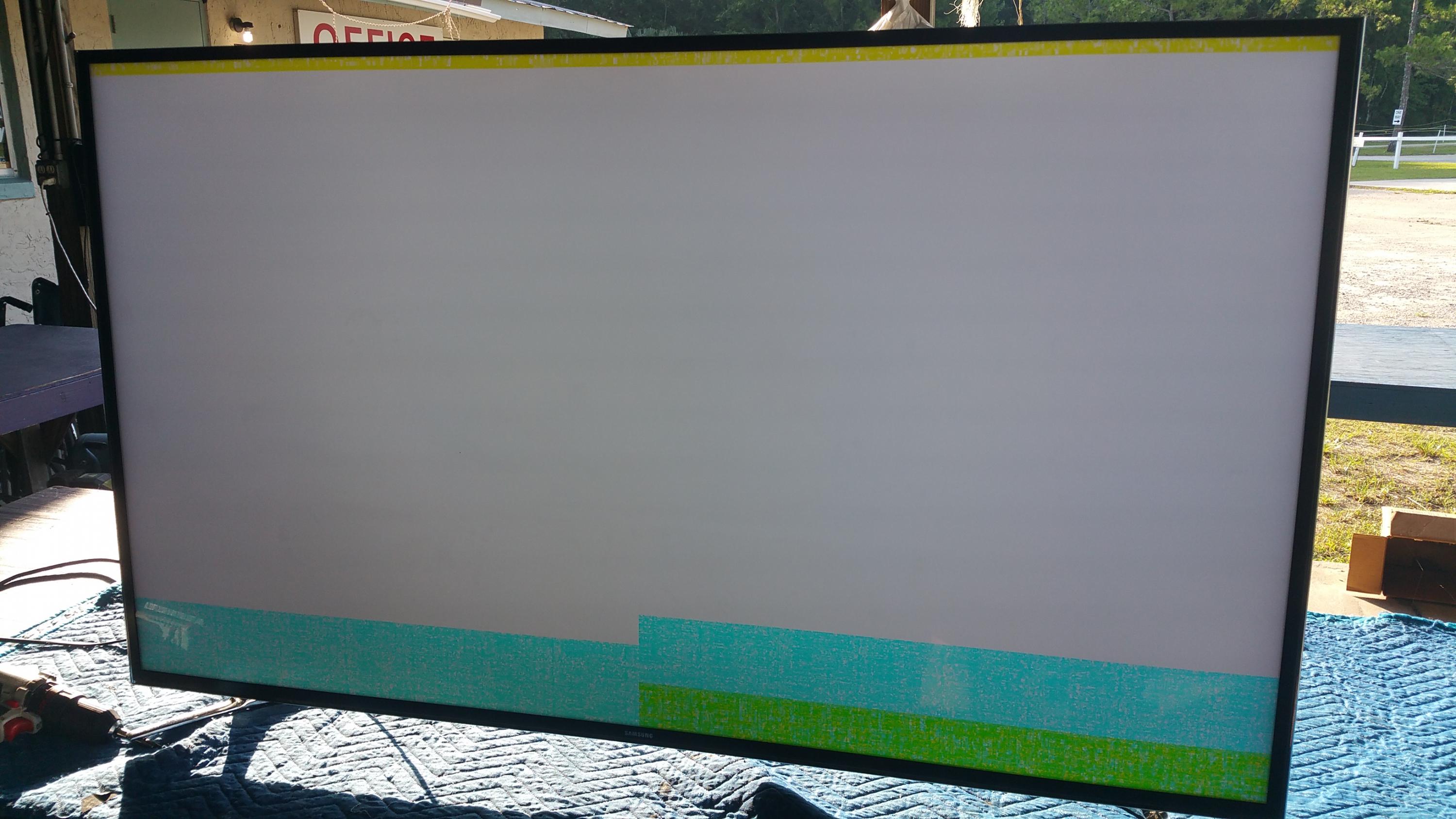 When powered up WITHOUT the OC box, I get a white screen with some green, blue and yellow coloring on the top and bottom edges...