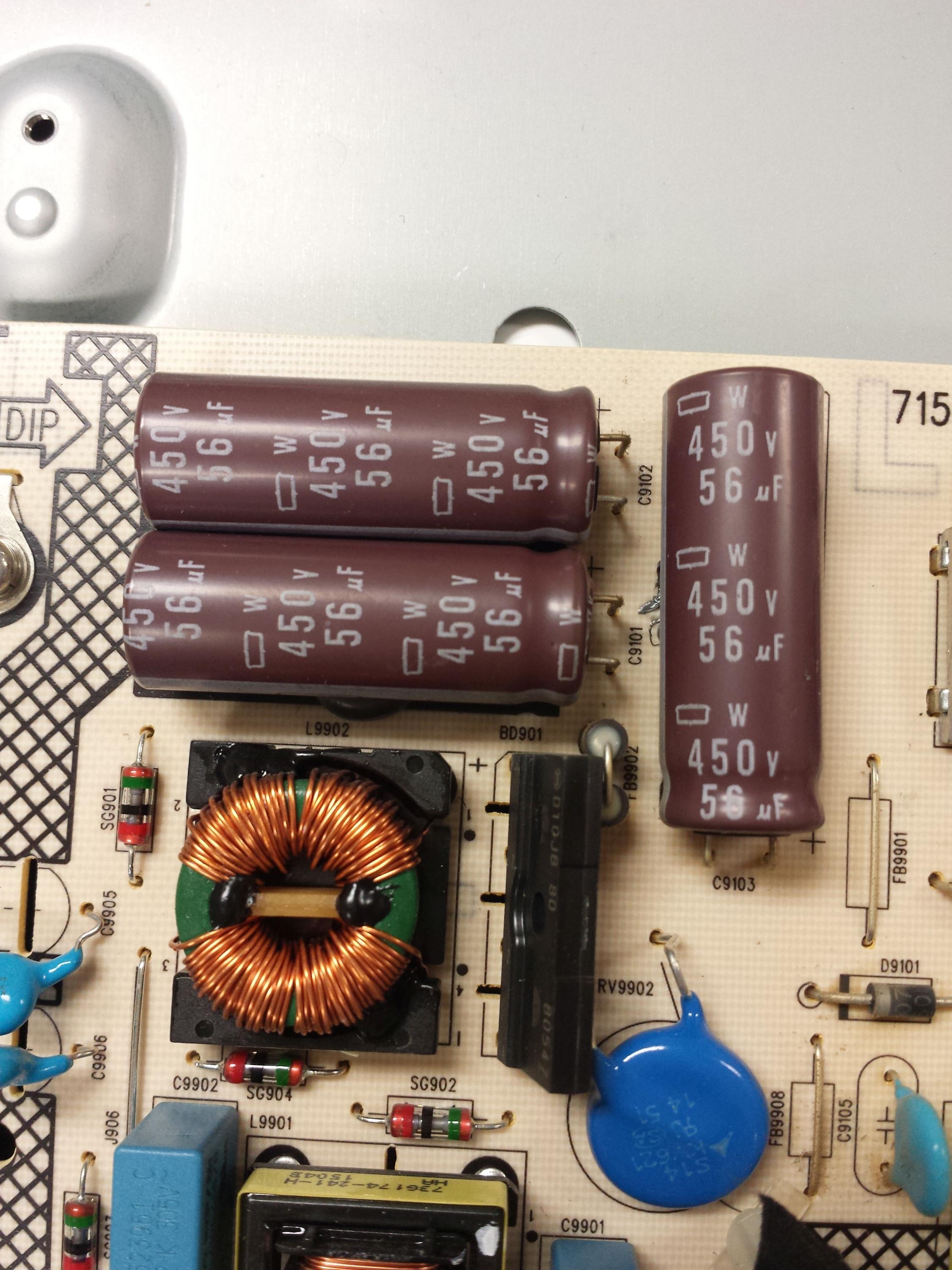 Thinking LED1 and main cap readings are off, but not sure what to examine and/or replace next. Gratuitous picture T-Con board included.