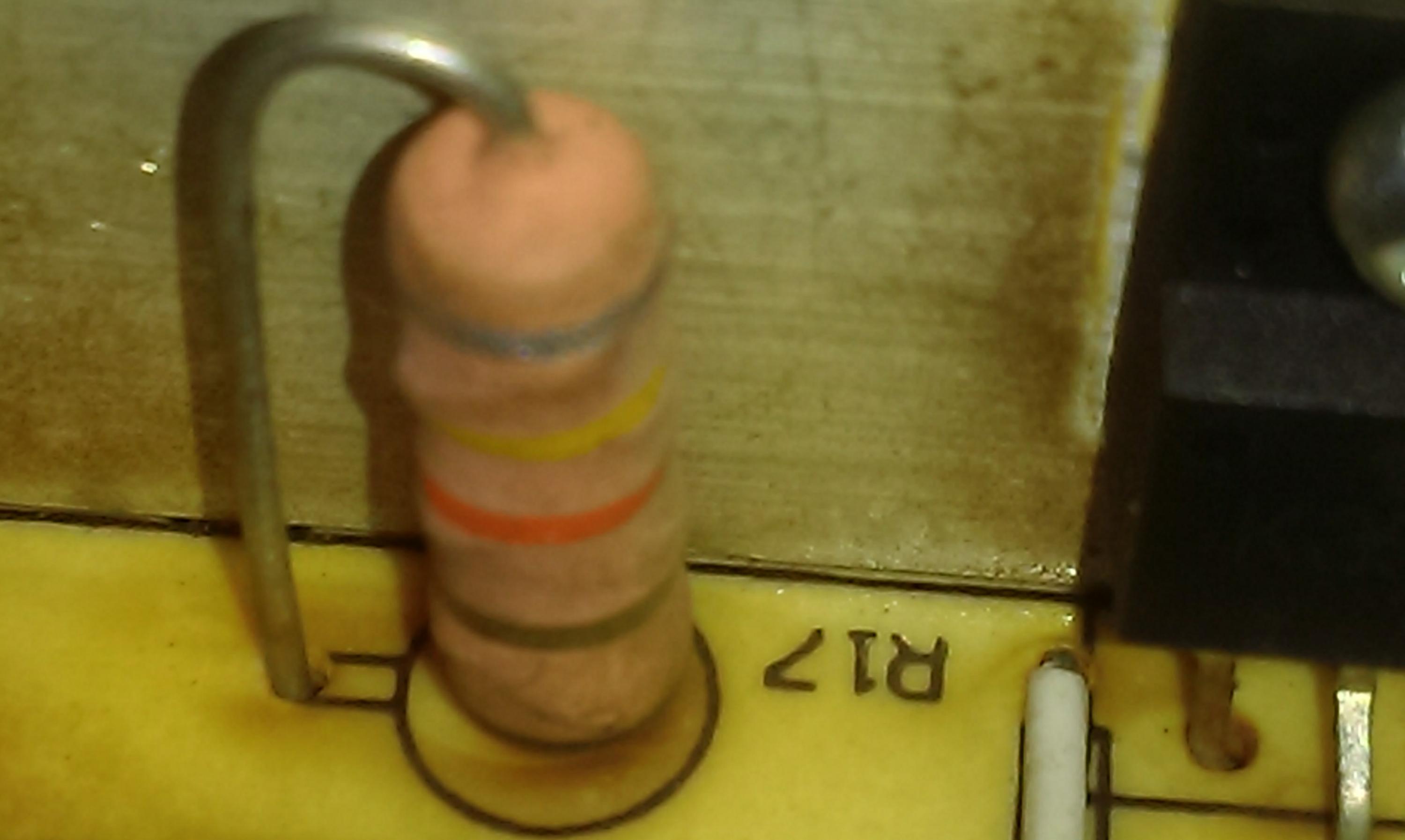 thanx again 4 reply....resistor R17 green.gold.orange.yellow.silver.......my pal now states the inverter board has a blown a 0HMS resister near one of the transformers.and made a small crater and burn mark....hope this helps...thank you.Comment