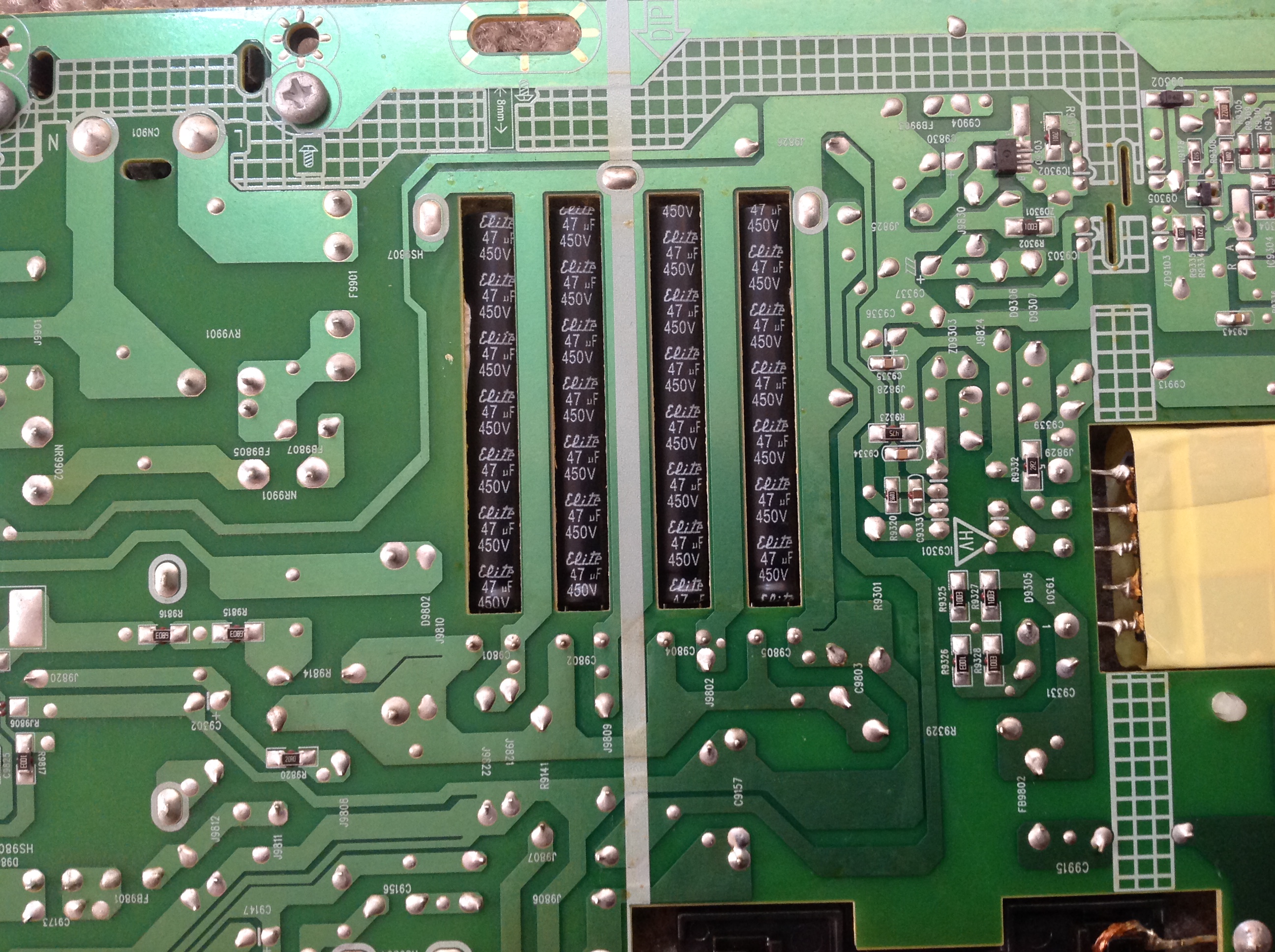 There are no visibly bad caps on the power or main boards.