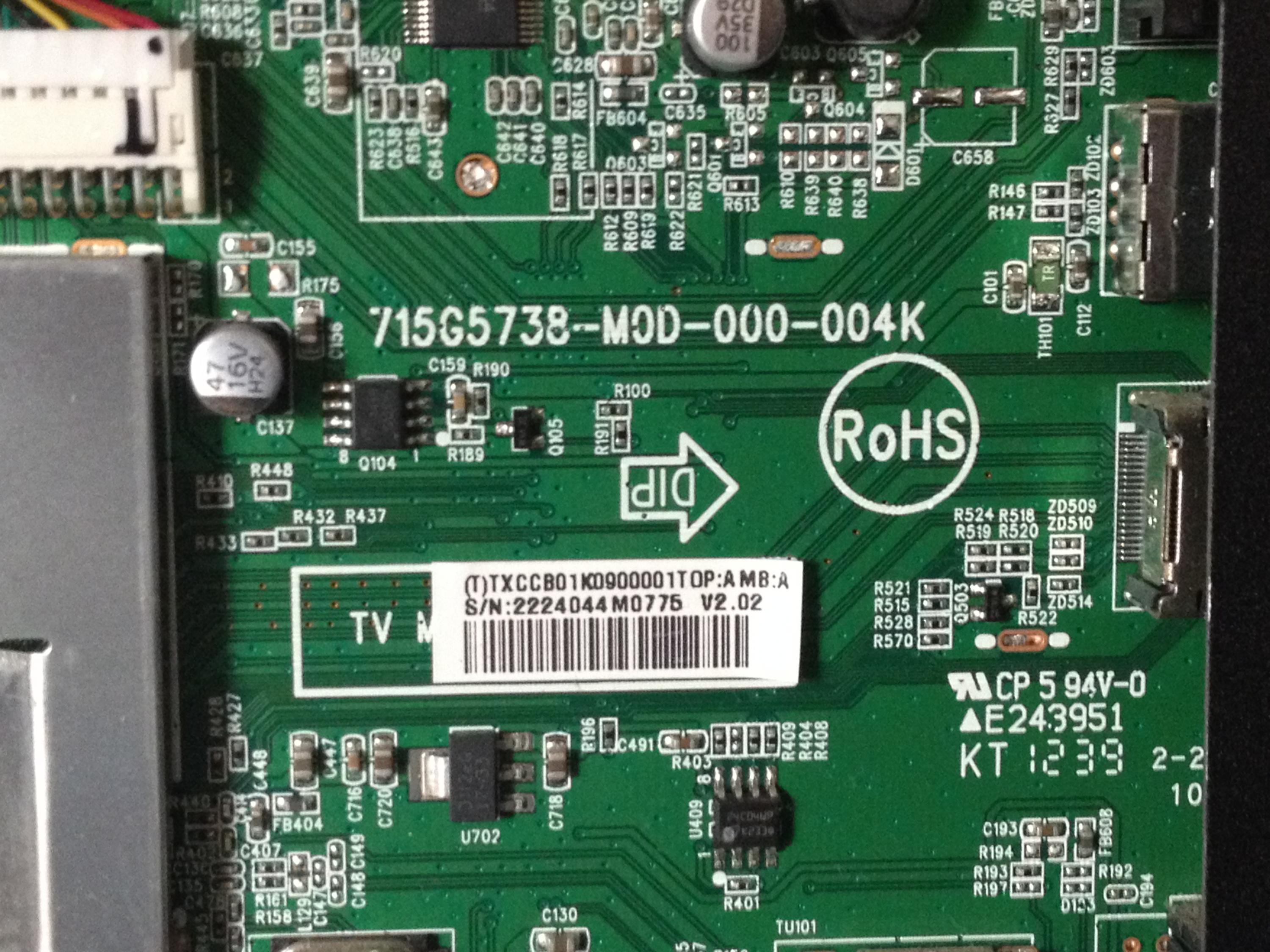Main board: 715G5738-MOD-000-004K / (T)TXCCB0K090000TOP:A MB:A v2.02