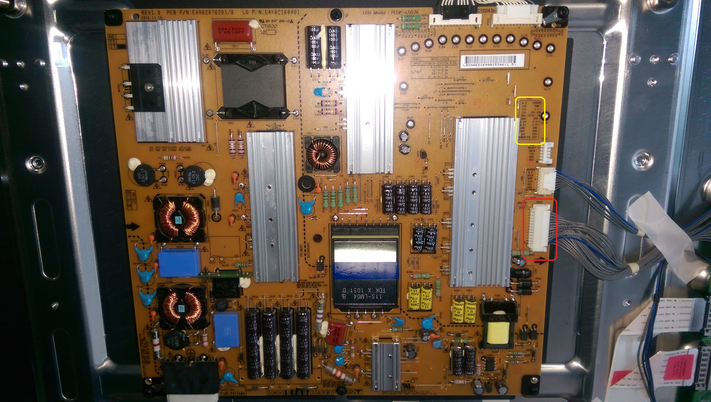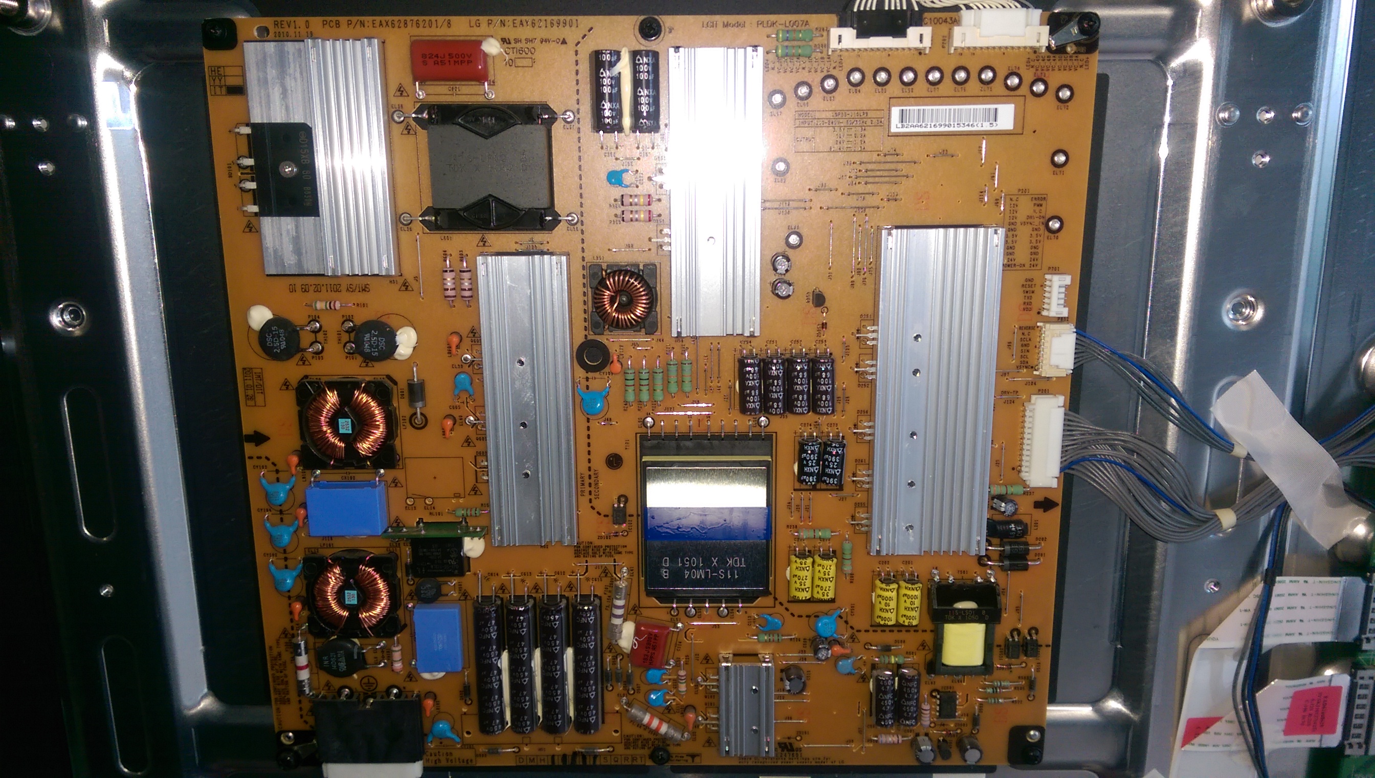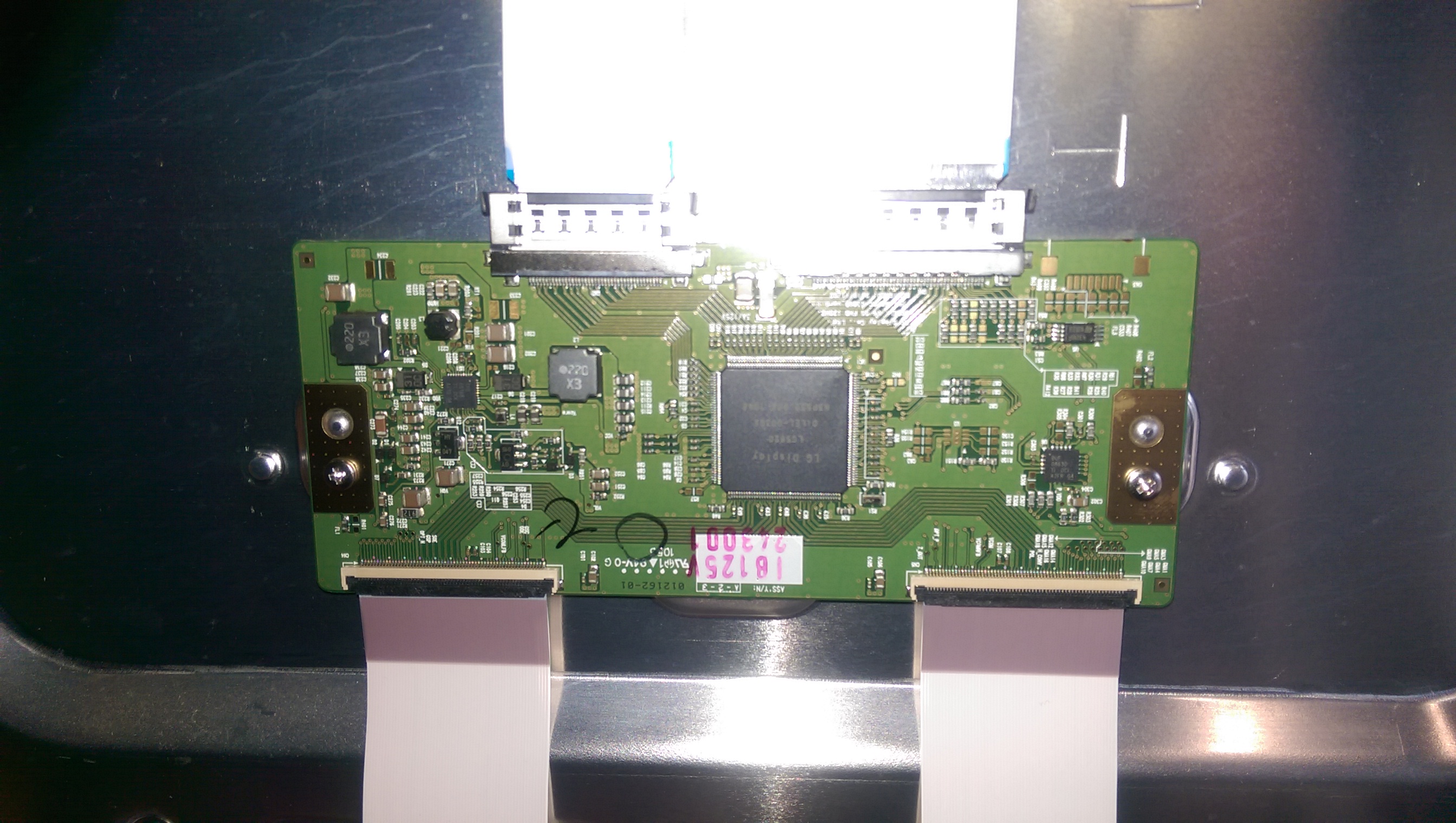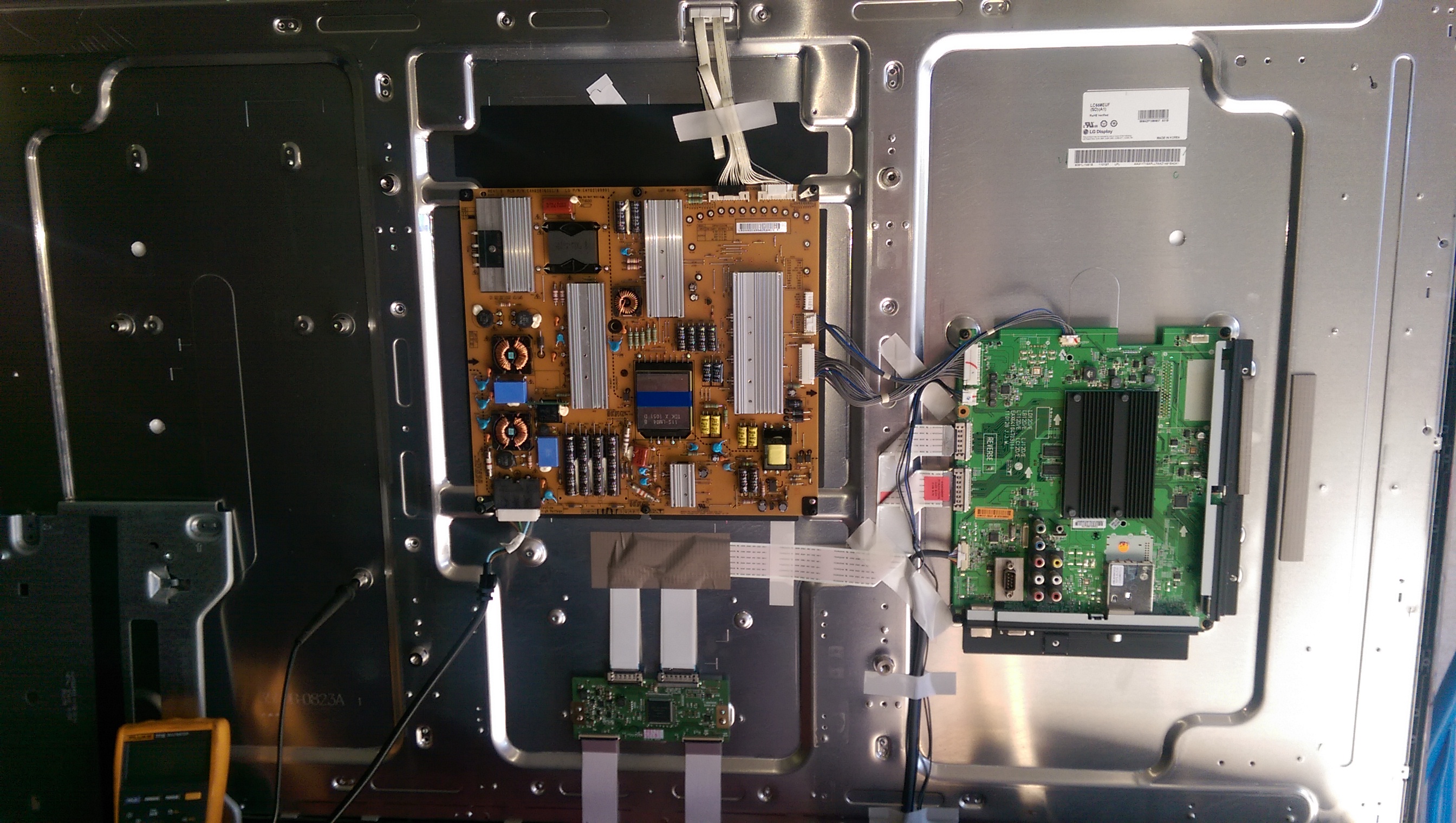 So I have a LG 55LV5500-TA with no picture or sound as I have seen in a few other threads for similar model TV's. I have followed the training manual posted here for a similar model and have proven the power supply is okay, and that the LEDS can be turned on by jumpering the power supply connector. What I have found is there are no volts on the fuse on the T-CON board, I pulled the main board out of the TV and tested the components that should feed 12v to the T-CON board and all the components test okay, it is as if the main control is not turning on this supply. Another observation that may or may not help is the LED in the bezel of the TV, when your power the TV with the remote, this LED starts off red, then goes white, goes off, then becomes white and stays on.
