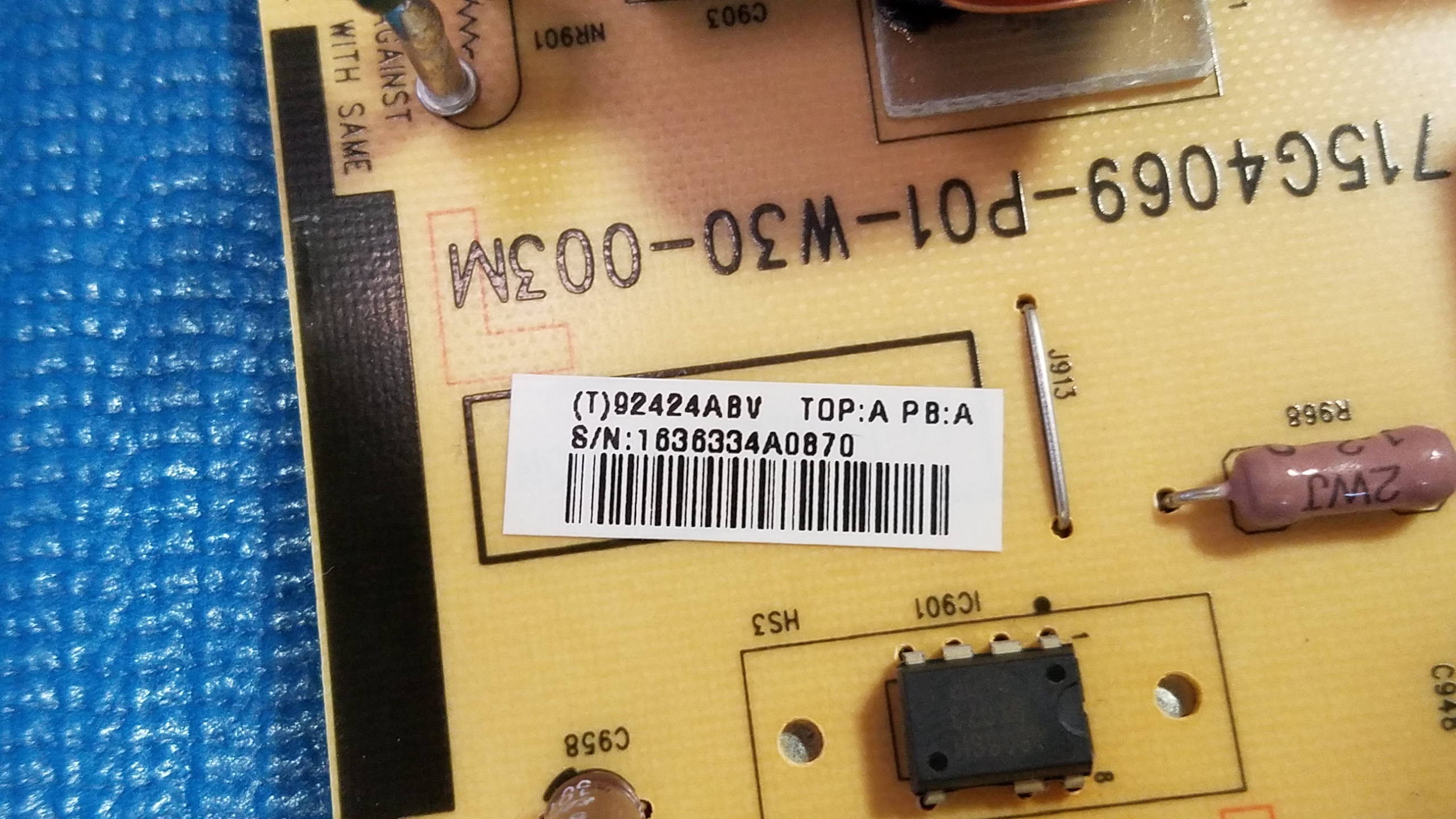 • TV came with vertical bars and no image. Found faulty TVS on left buffer board. Also replaced T-Con (may have damaged the original while hot air removing components, board has slight warp) and have full image but few horizontal lines on the screen. Some of the lines appears to be 2 pixel tall while others are 1 pixel tall.