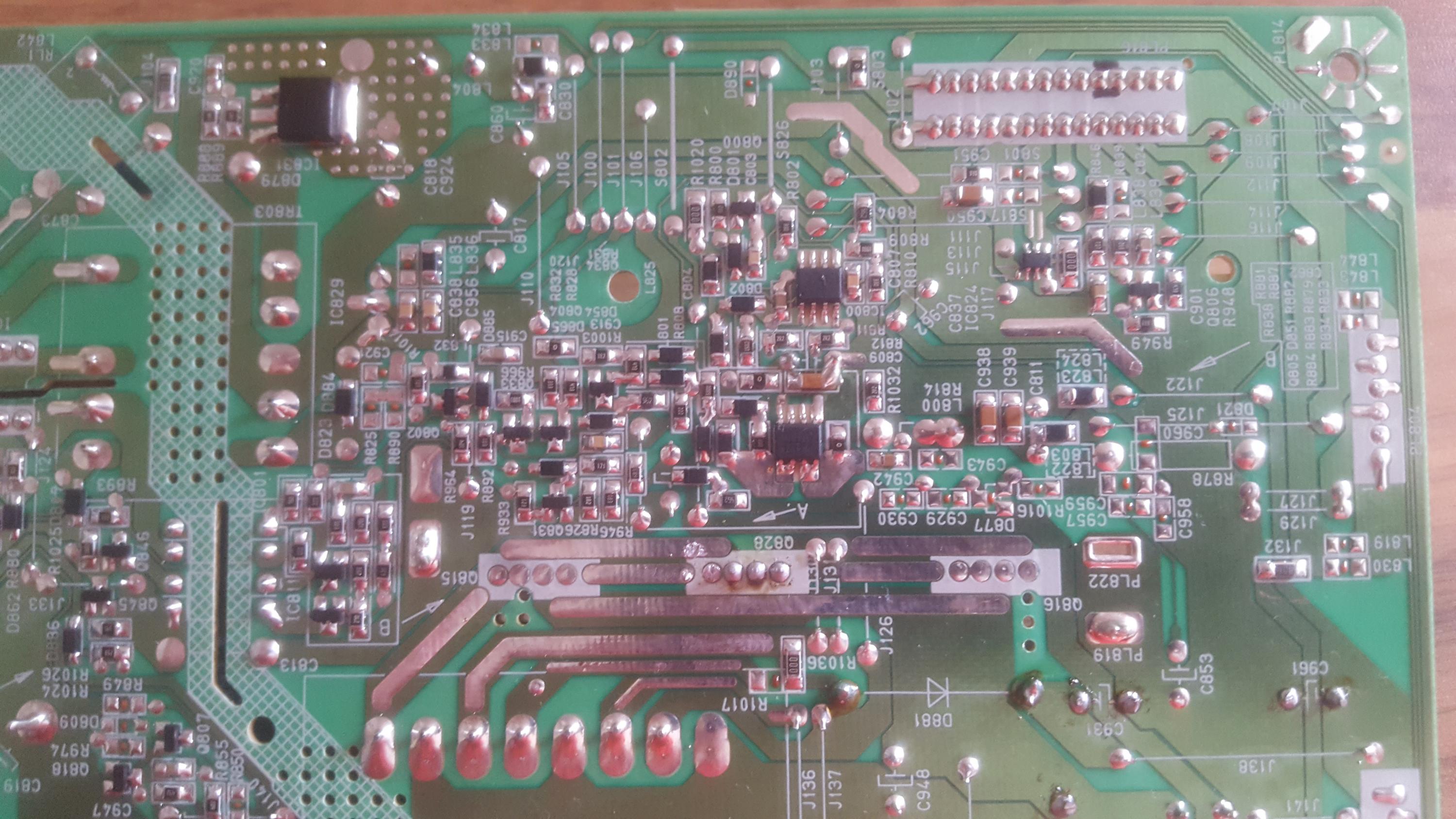 Hi there i replaced some caps on this power board but when i was doing a voltage test on the outputs after the recap i accidentally touched too pins together ( Which i have marked out with a circle ) now the board will not start up i Believe i have shorted the earth with the 12v line .can any one point me in the right direction on what to check which maybe i shorted when touching the pins together .