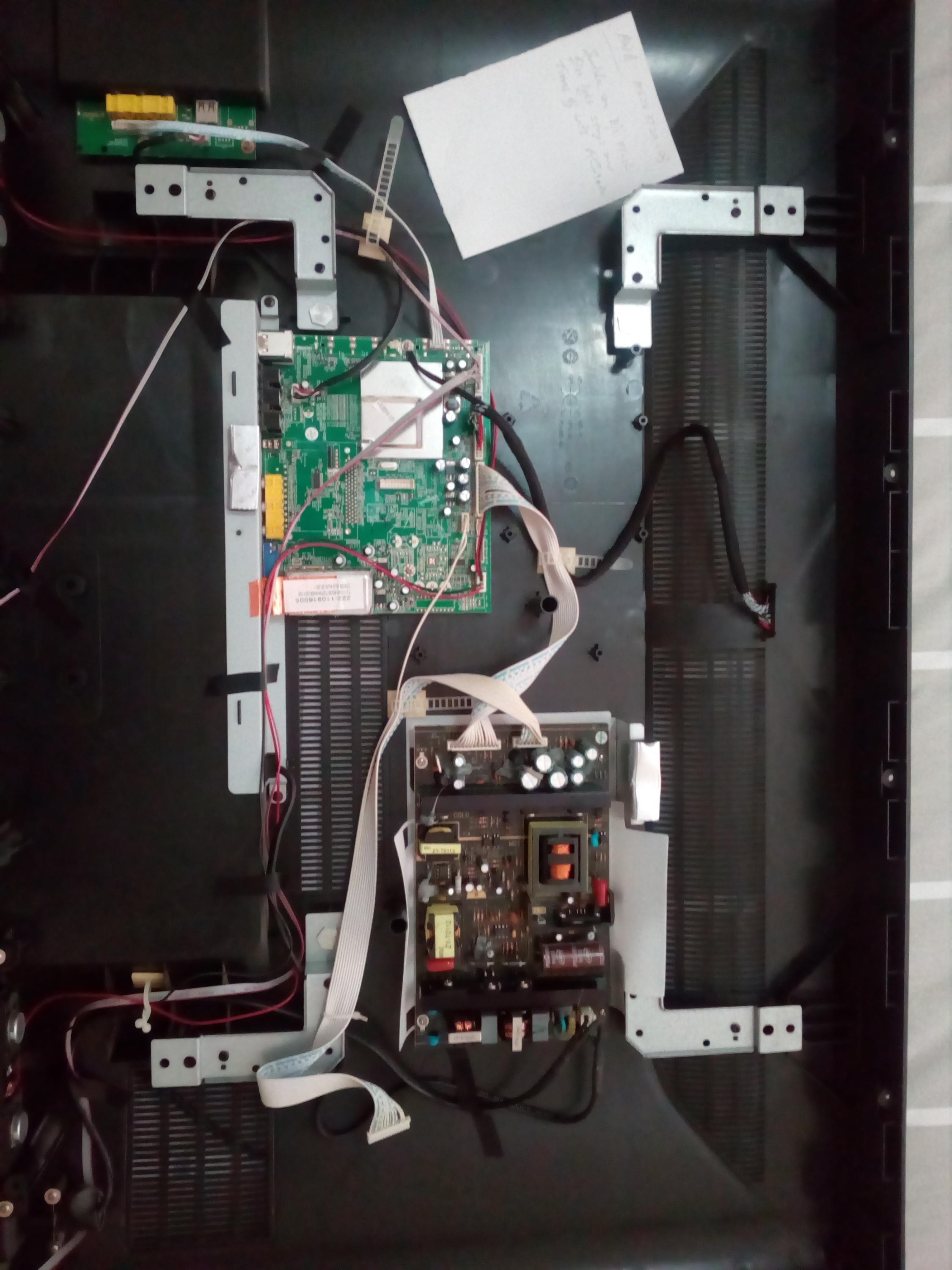 Posting this for two reasons one being this set marketed under several brands. It was given to me by a nice younger guy. Had standby light and at switch on red changed to blue and I saw a brief flash on screen. The set seemed to want to operate as it did not switch off until did so with remote. Took it apart and power and main mounted on inside of rear cover whereas inverter and tcon on chassis!!! Checked voltages and all as they should be so looked closely at all boards but no signs of any problem but did notice inverter board 10 connectors just a little dirty so gave them a clean and slid them in and out of connectors several times. Then put back together and set started normally got menus up did a factory reset and tuned channels in. Now running well. So the second reason to post is sometimes the simple solutions do work!!