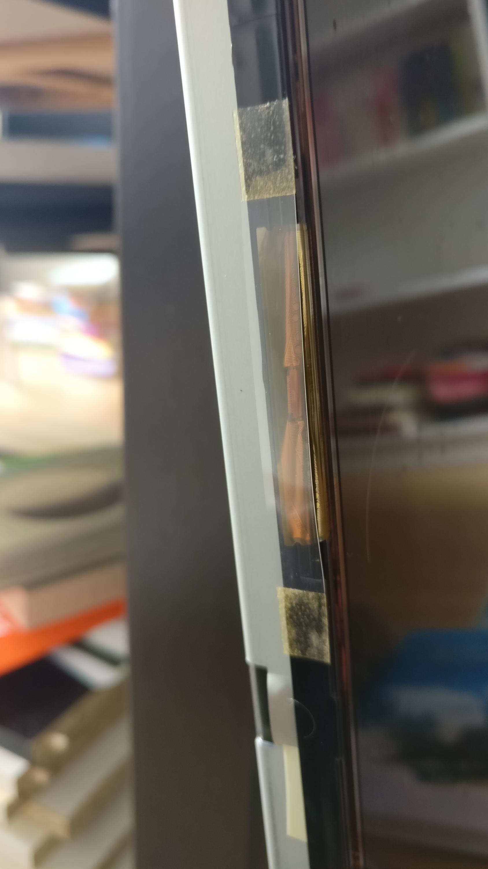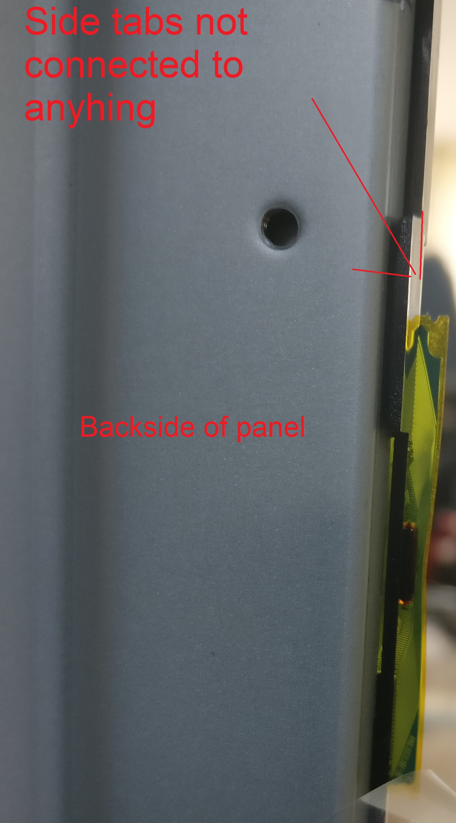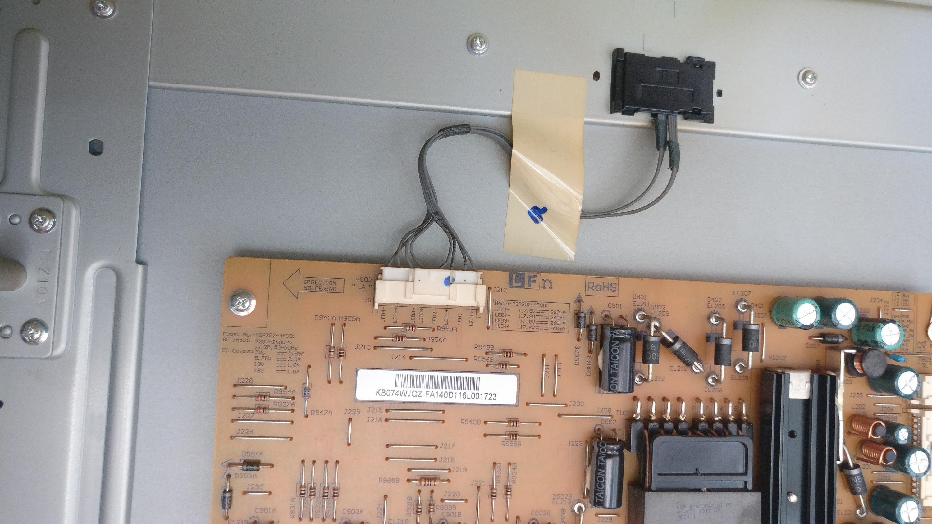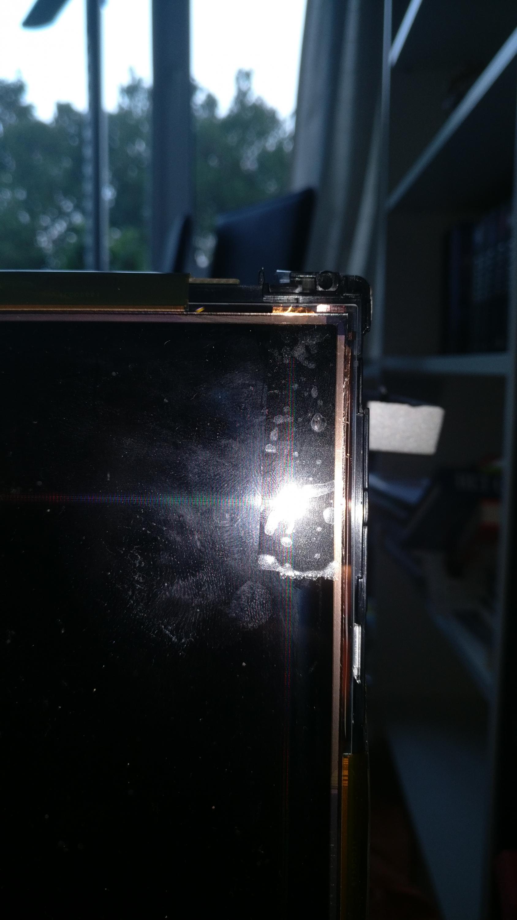 I read up on the Sharp TV sets and people are pulling out the side driver boards. I opened it up myself and on the sides small ribbons with a chip on it are hanging out on their own not connected to anything except the LCD itself. One of these looks a little bit burned, on the bad side. When I push it while the set is on it will temporarily fix parts of the horizontal line on the good side. See the picture I attached.