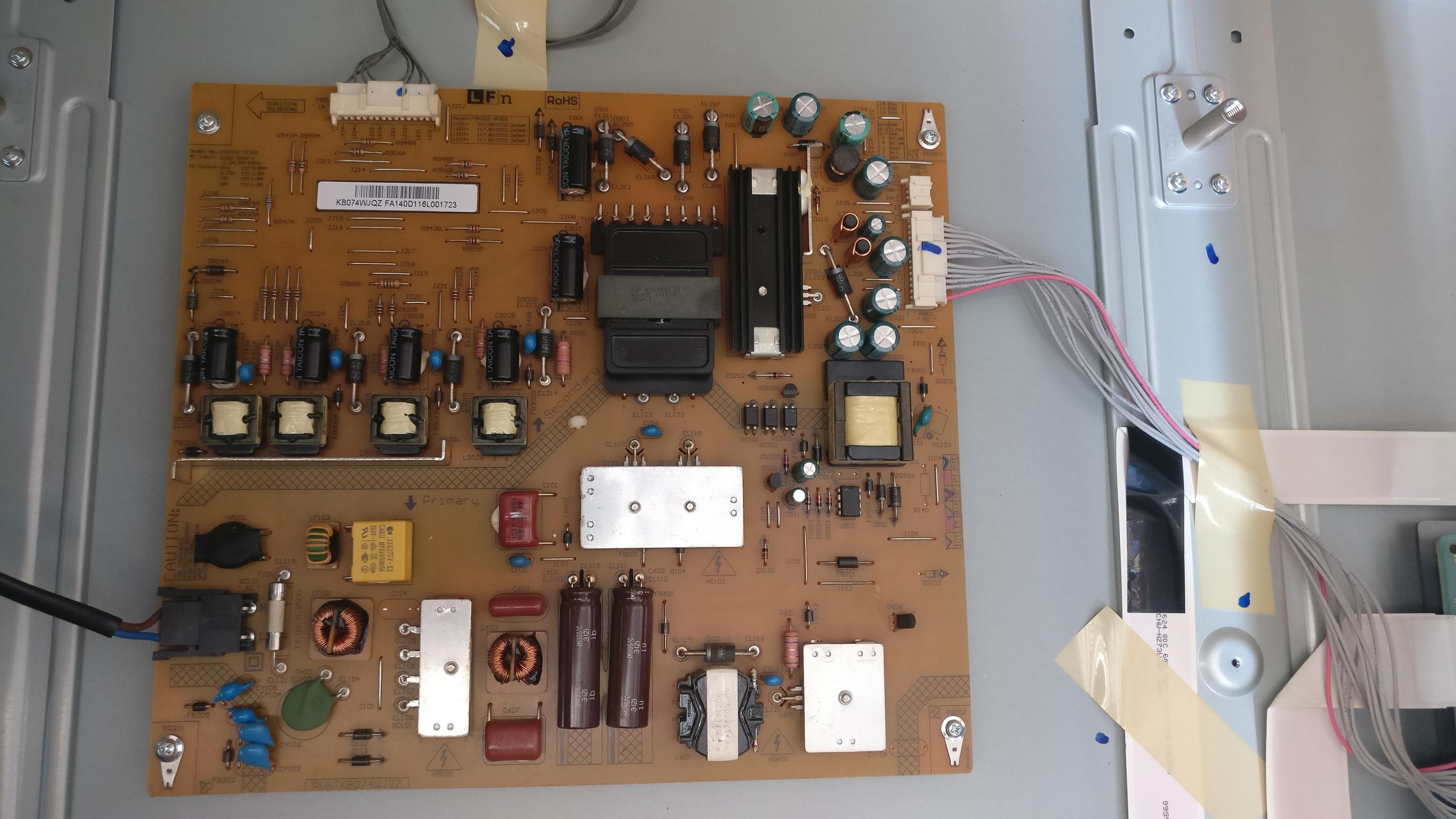 Measured the voltage going into the T-con (12V). Test points that should be 6V were all 0 or 0.1v. At this point I was confused since both backlight and T-con weren't reading the voltages I expected.