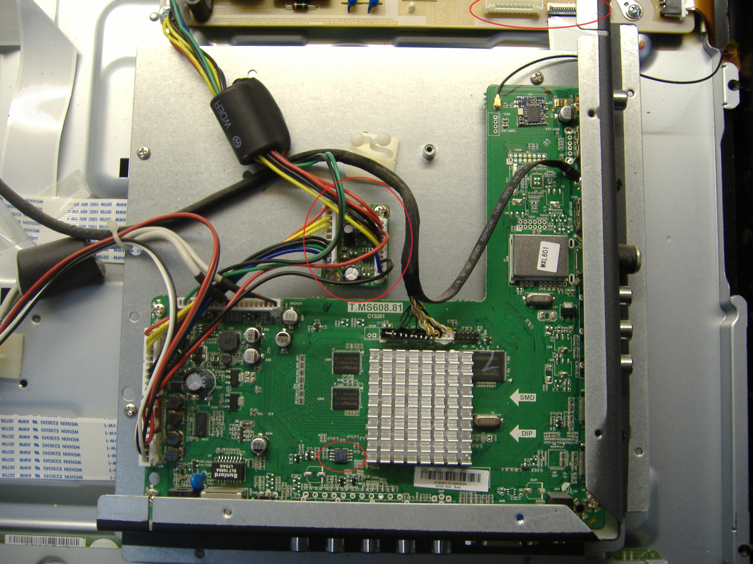 I tried shorting pins 5&6 on the eeprom 25Q16 (circled photo3), but didn't help.