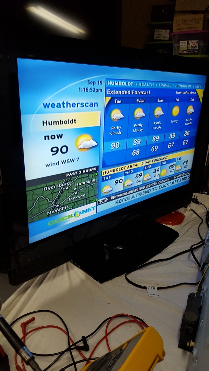 Element ELCHS321 Comes on then buzzes and the picture (menu and all) starts flickering off/on rapidly.