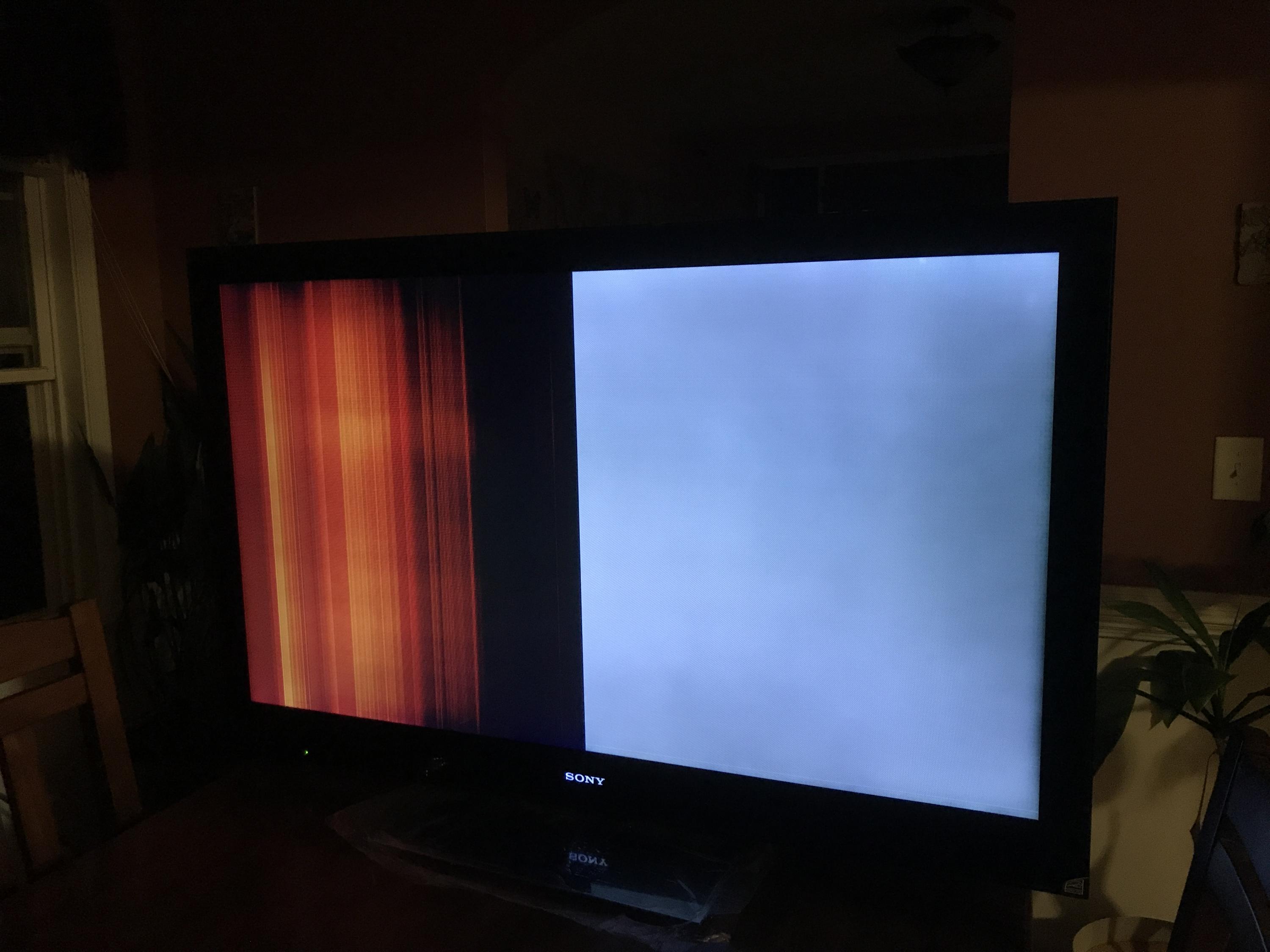 I have opened her up, disconnected all connectors and re-sat them. I have pulled out the t-con board and power board to look for shorts or obvious problems. I shook the boards violently and yelled at them to no avail. I put it all back together with no extra parts and got the same screen. I have not pulled off the front bezel.