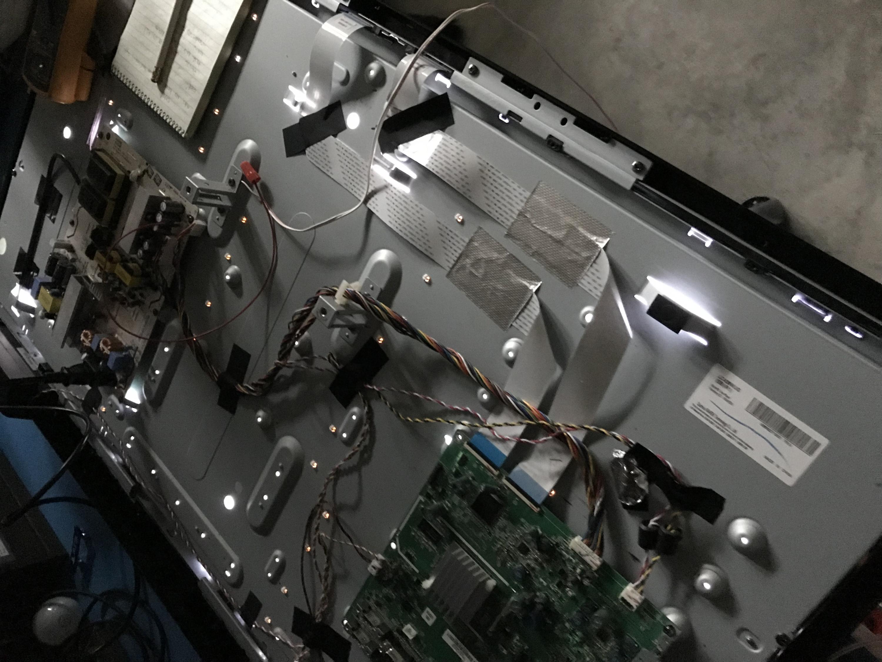 - I disconnected the ribbon cables between the main board and the integrated T-CON, no change in behavior.