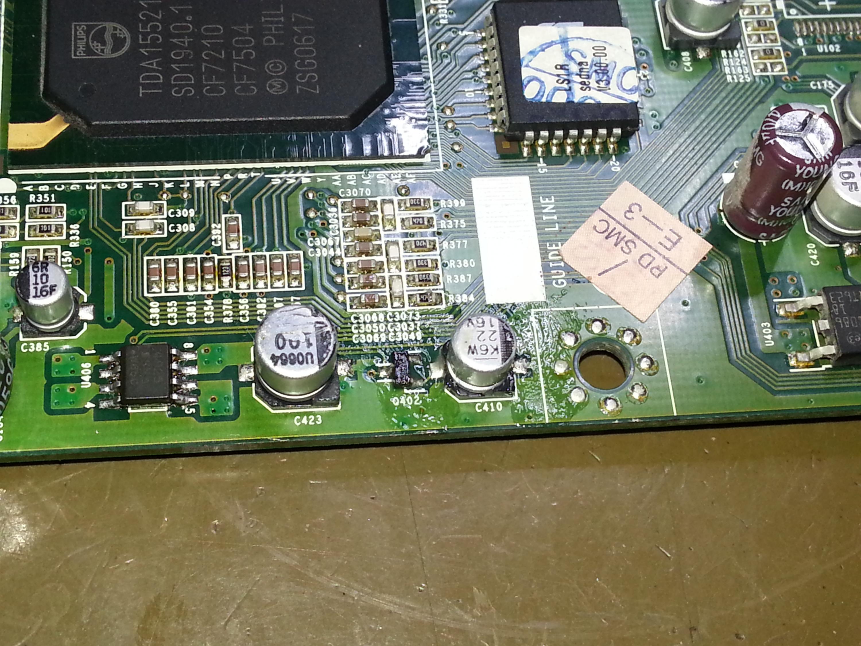 So there you have it, three consecutive and apparently unrelated problems within the same TV, at the core of all of which however lie bad caps. Areas affected: power supply, CCFL driver, main board. The last one I find particularly interesting, because I couldn't find this fix anywhere else. I'm not too proud of my workmanship though, because instead of closing the TV up every time, I should've properly tested it and not count my chickens before they hatch