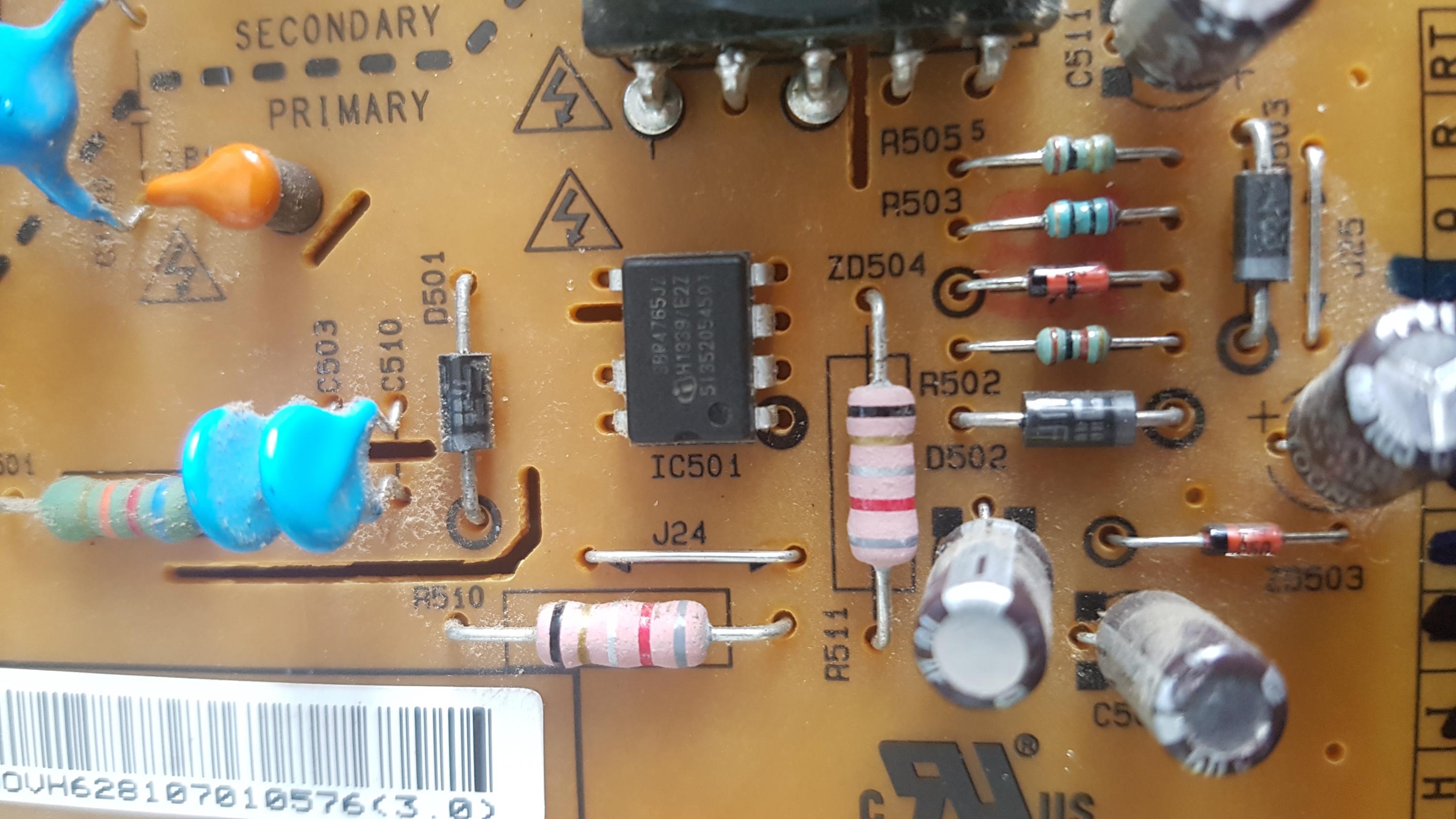 (there is a burn near F100, it looks as if this fuse has been replaced and that is from it being soldered - I got this TV used with a backlight issue, clearly it has had a problem before)