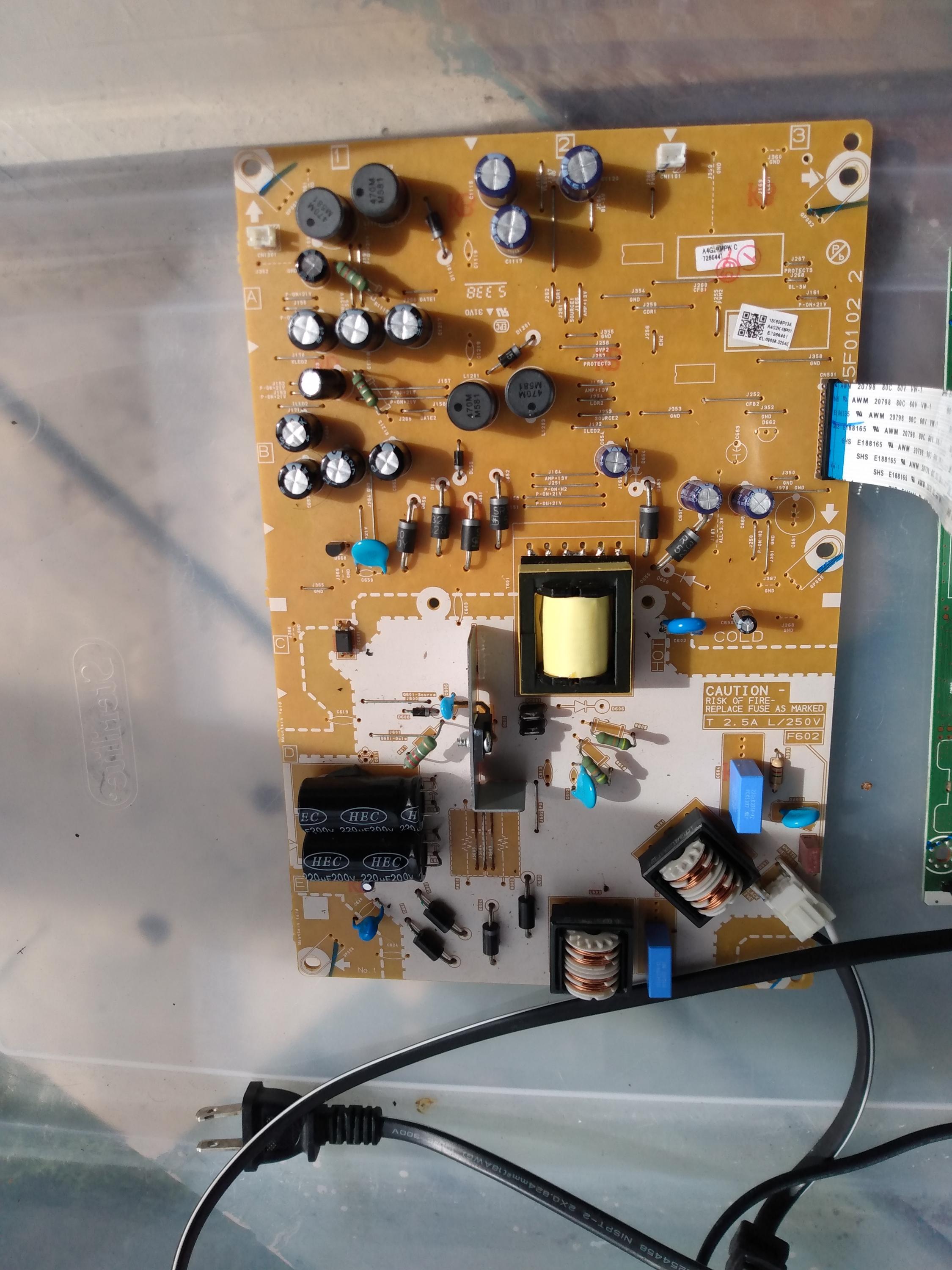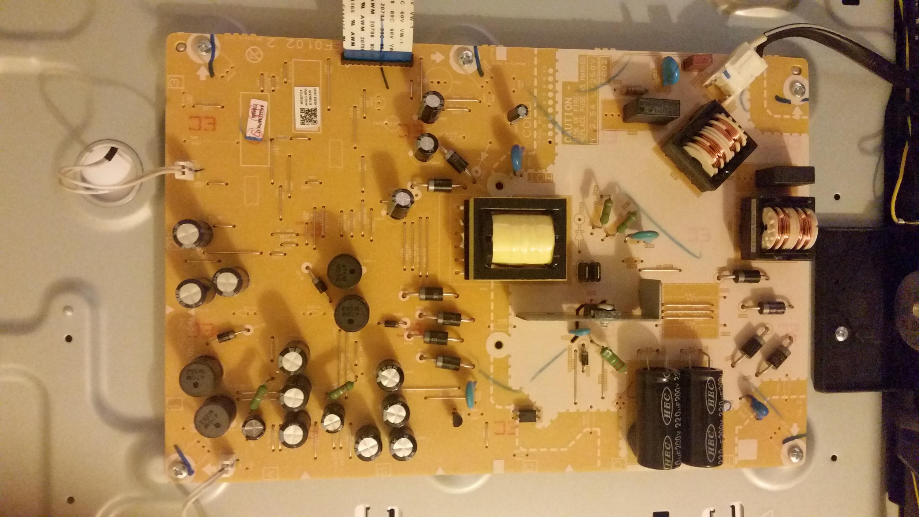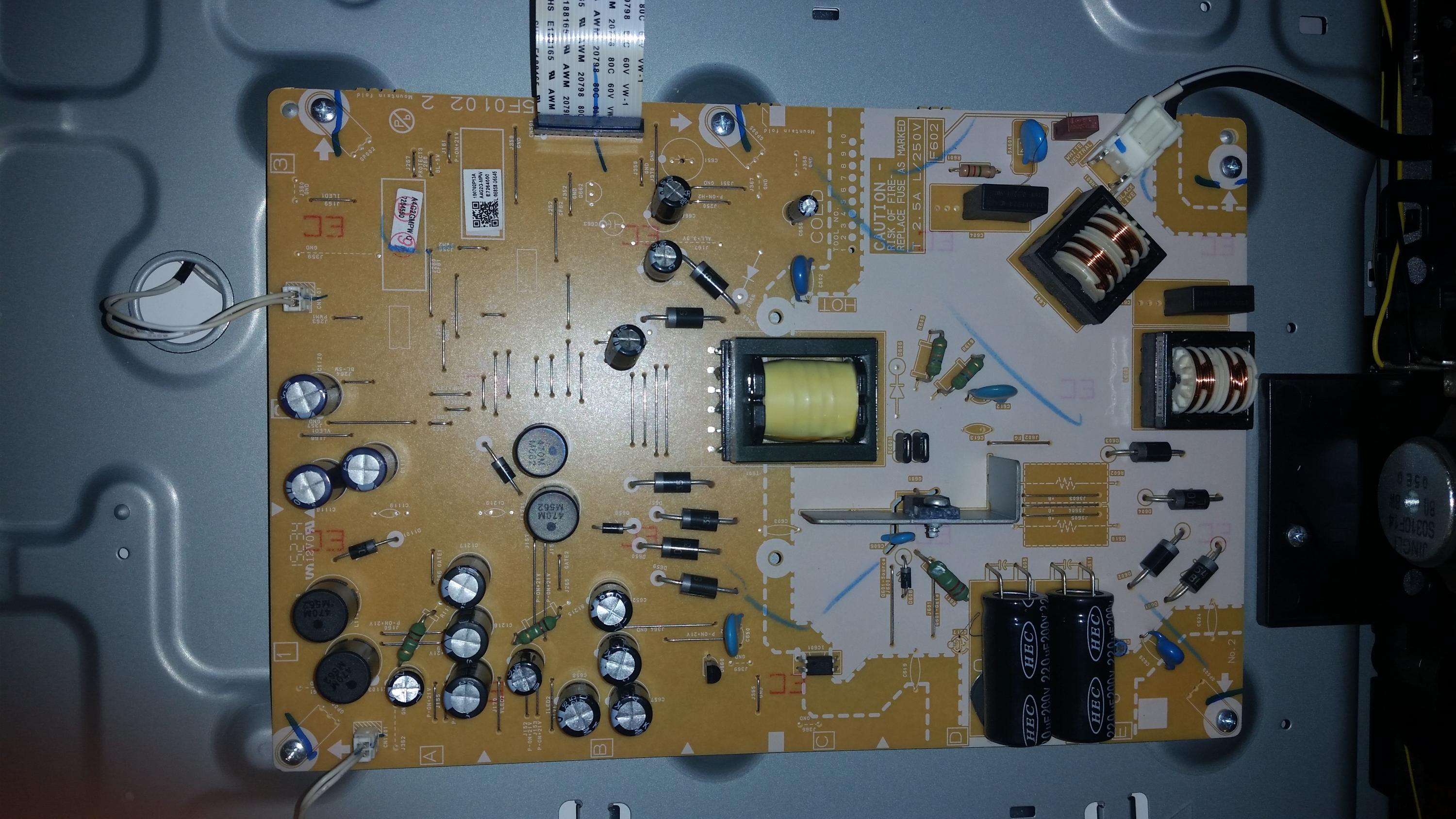 Hello. I have an emerson model lf402em6f and it has no standby led and it won't power on. Is it possible that it's the EEPROM because I repaired a set that was plugged in the same (possibly bad) outlet and it needed an EEPROM chip. Also with this set, I don't see a legend or test points to test the boards to see which isn't working properly. Should I just assume it's the power supply since there is no standby led or does anyone have any experience troubleshooting this set, because it isn't like the sets I'm used to repairing. I've included pics of the board layout and closeups of the boards and connections. Any help would be greatly appreciated. Thanks.