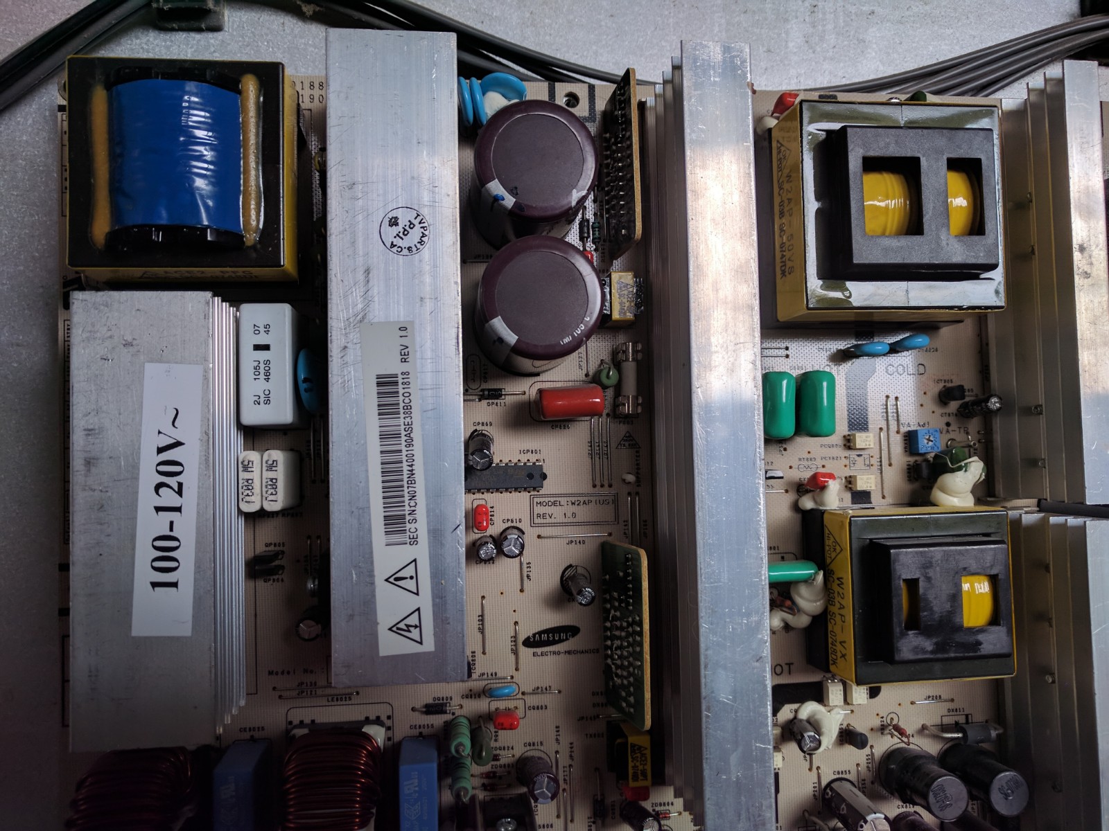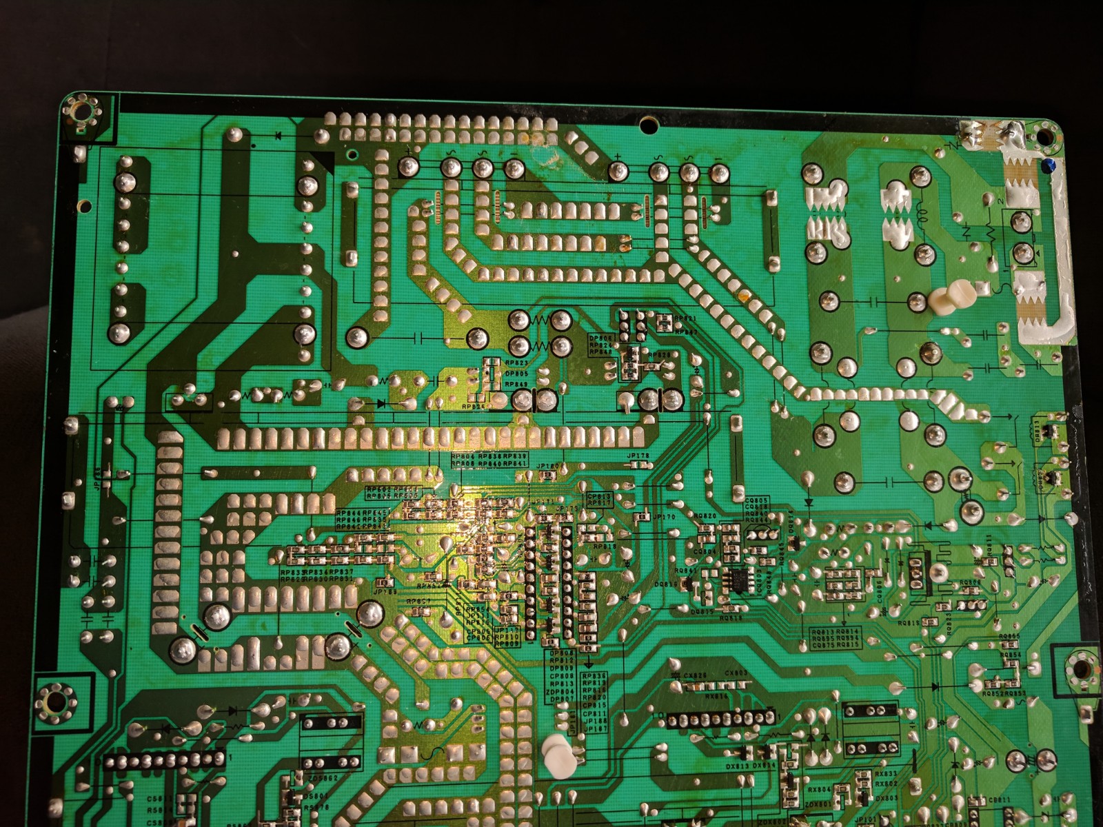 picked up this tv a while ago, had no power but audio, pulled power board from tv to take measurements and such, plugged in several times to check measurements and then all of a sudden something failed/shorted and and basically ruined board