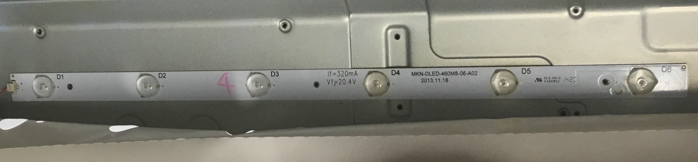 There is 10 led light strips with 6 led on each divided between two connectors/lines, so 30 on each connector/line in series, total of 60 led. 21 of these led were open. I changed all open ones. Now I got backlight for about 2 sec. It measures about 145V on two white connectors for led lines for a second without load and climbs up to 75V and slowly drops with them connected when they all briefly come on. I tried checking all strips separately with a power supply applying 20.4V to each and each read about 200mA on my ammeter.