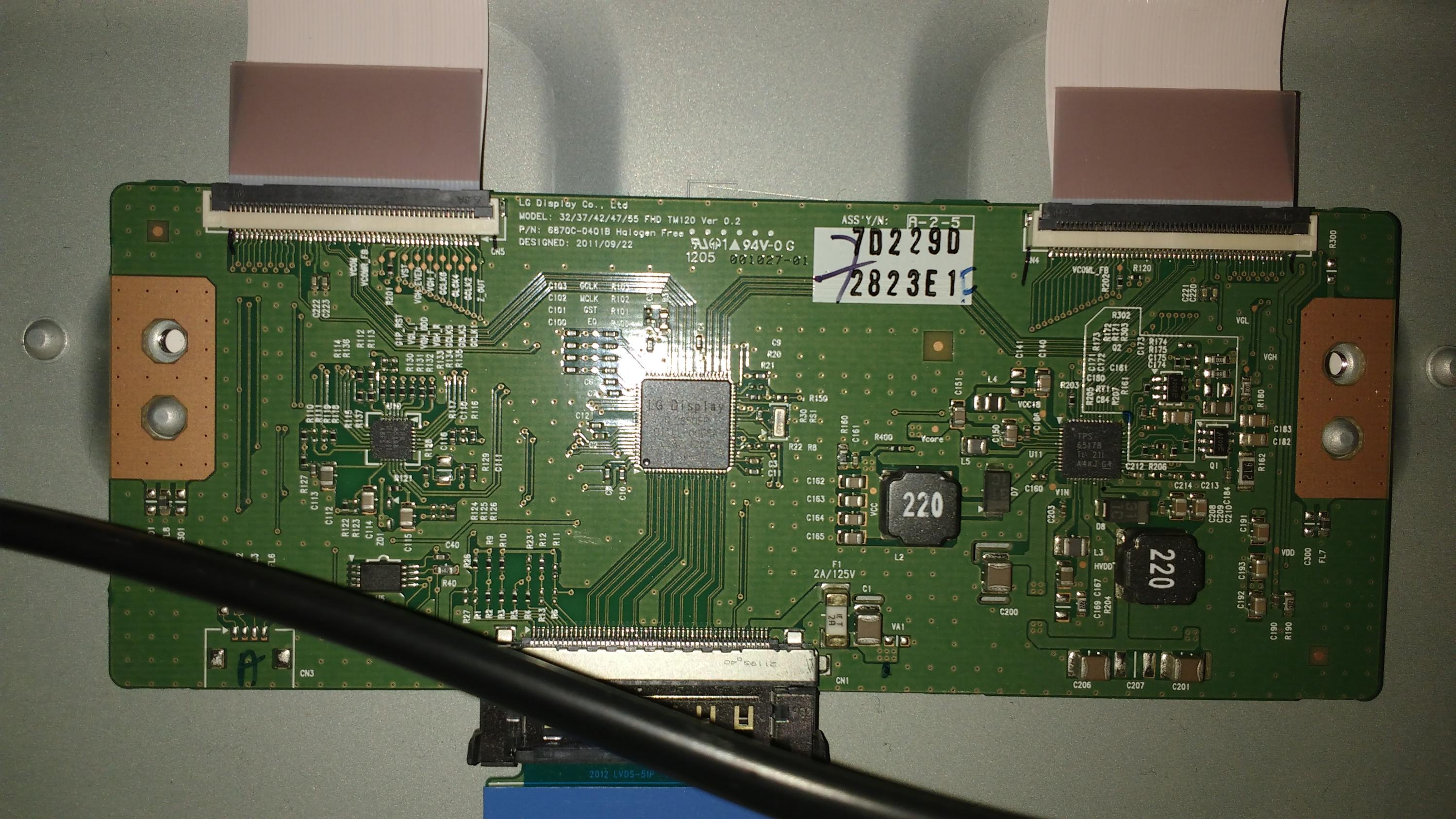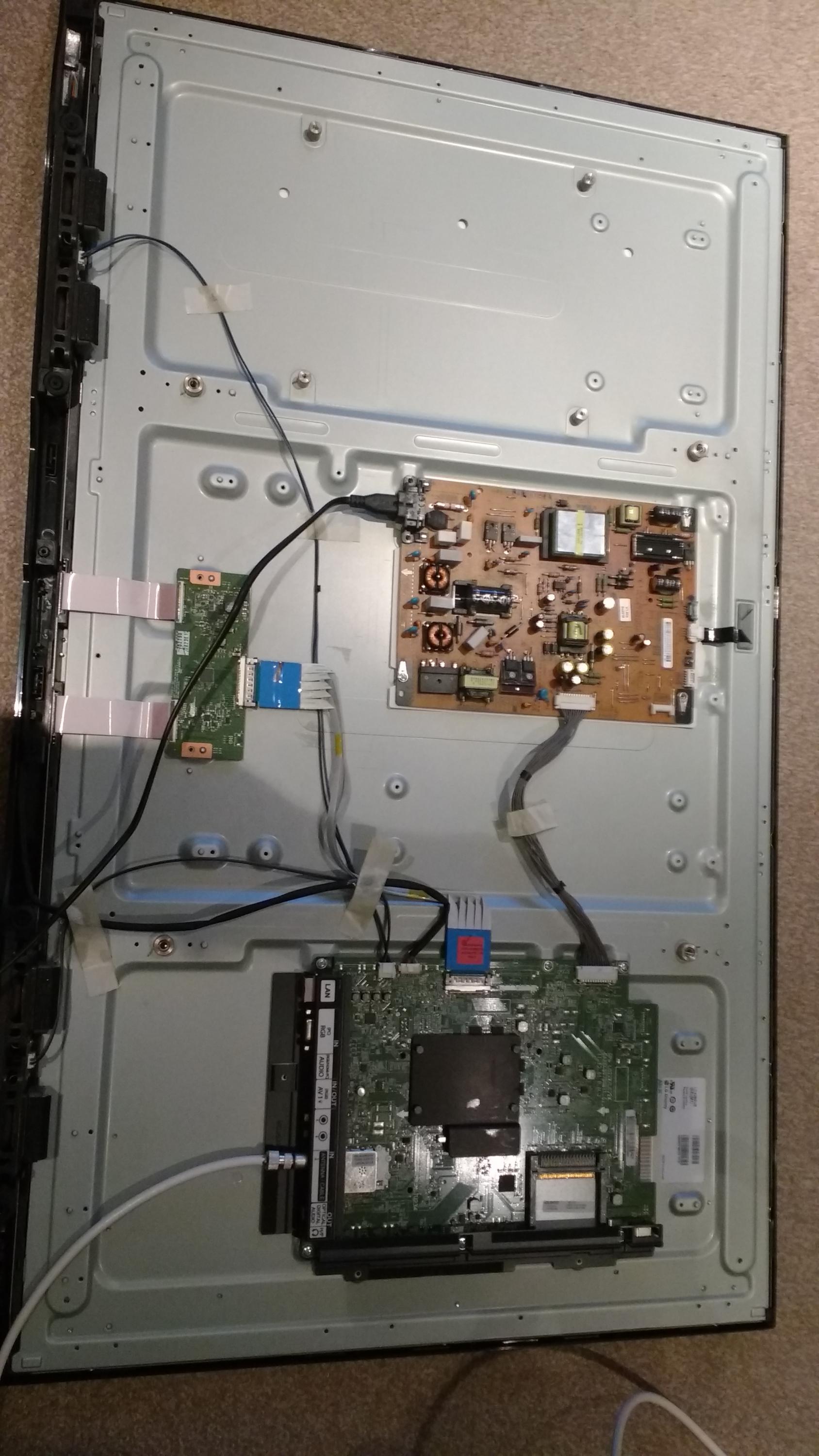 Anyone had any experience with this model or able to offer a pointer to allow me to attempt to fix. I have attached some photos to assist, which in order of attachment are the back of the whole tv, the power board, the main board, and what I assume to be the timing control board.