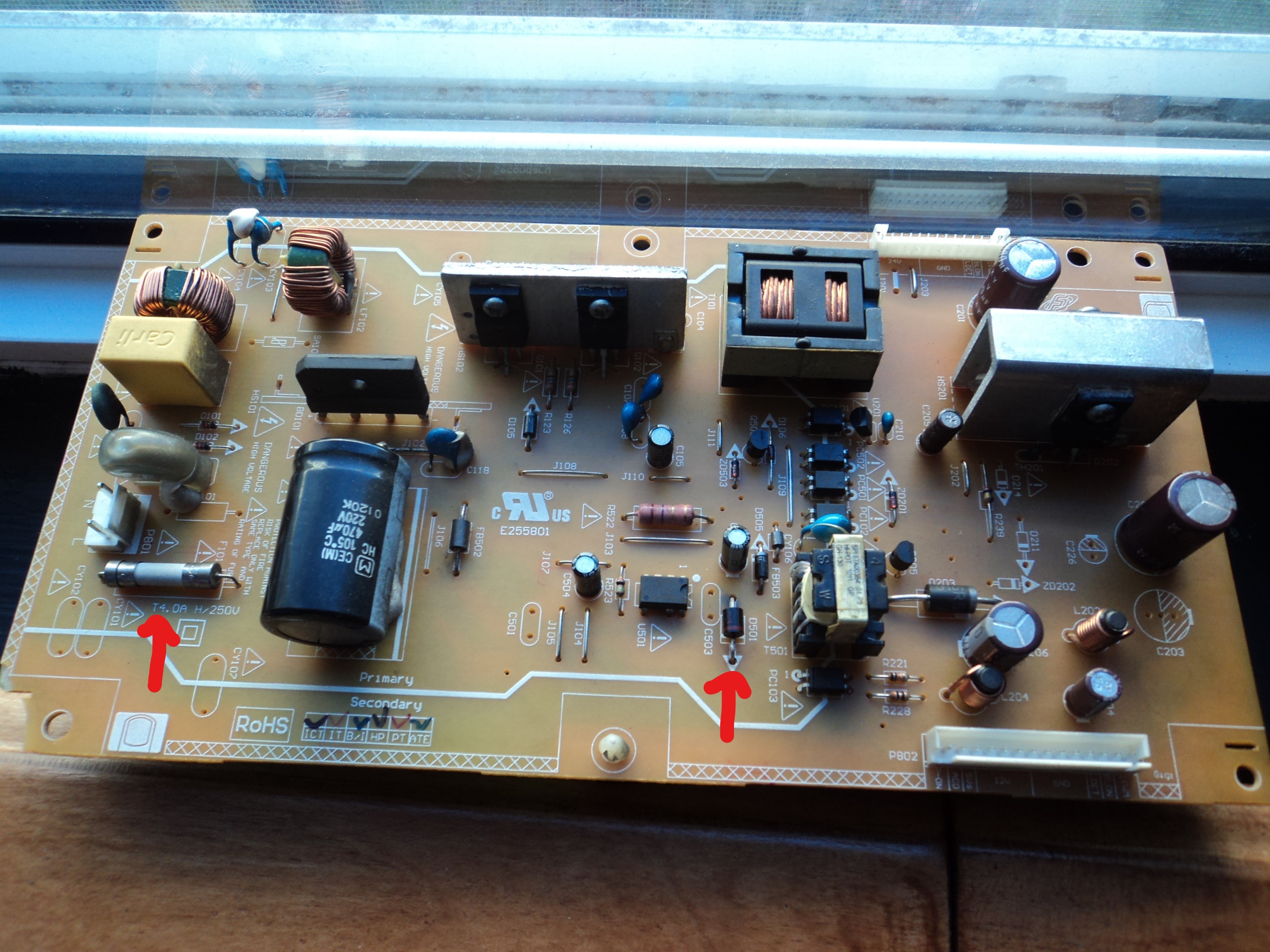 Hi guys; i picked this tv up and opened it up and found out Fuse and a Scott y Diode short circuit and out of the circuit it's Open,could it be more parts bad? send you Pic of Power Supply,and the Diode Sckoty it's T2D- 02,what other similar can i use?Thanks