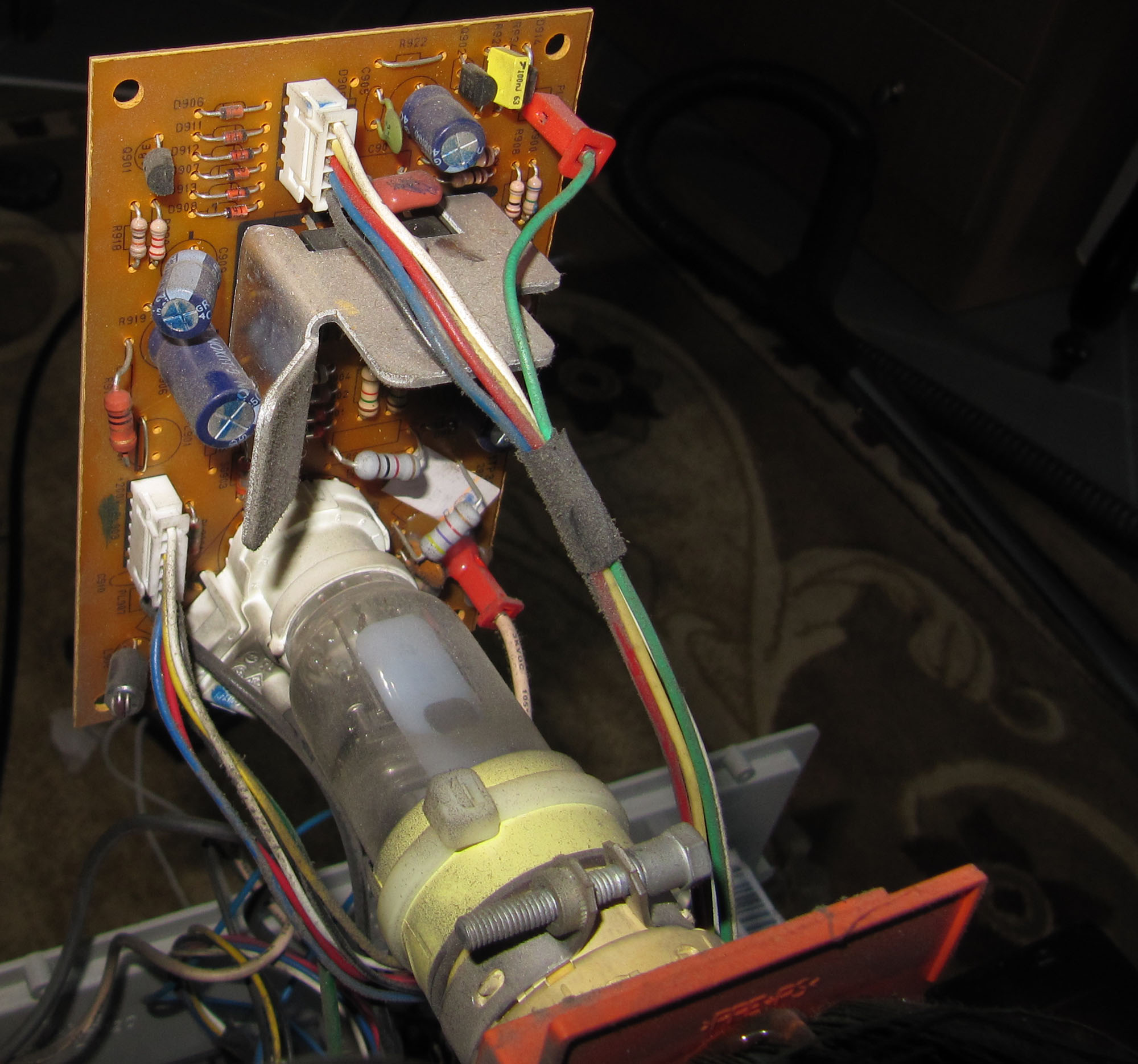The posistor MZ72AL-9RM failed high resistance (~6.36kohm), degaussing coil no longer worked and the image suffered some horrible color patches.
