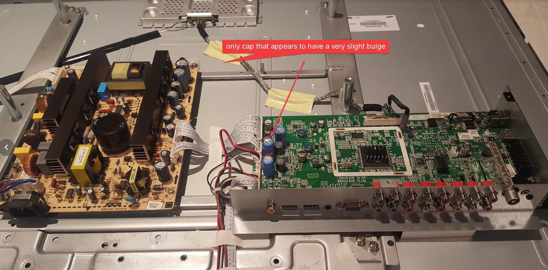 So, I removed the rear panel to search for visible signs of anything that might not look right but could not see anything wrong, however, i am not an electronics guy so I am hoping someone could help me look into this further. I did, however, look for any bulging capacitors and they all look ok to me. There is one thou that has an ever so slight bulge which could be the problem but not sure?