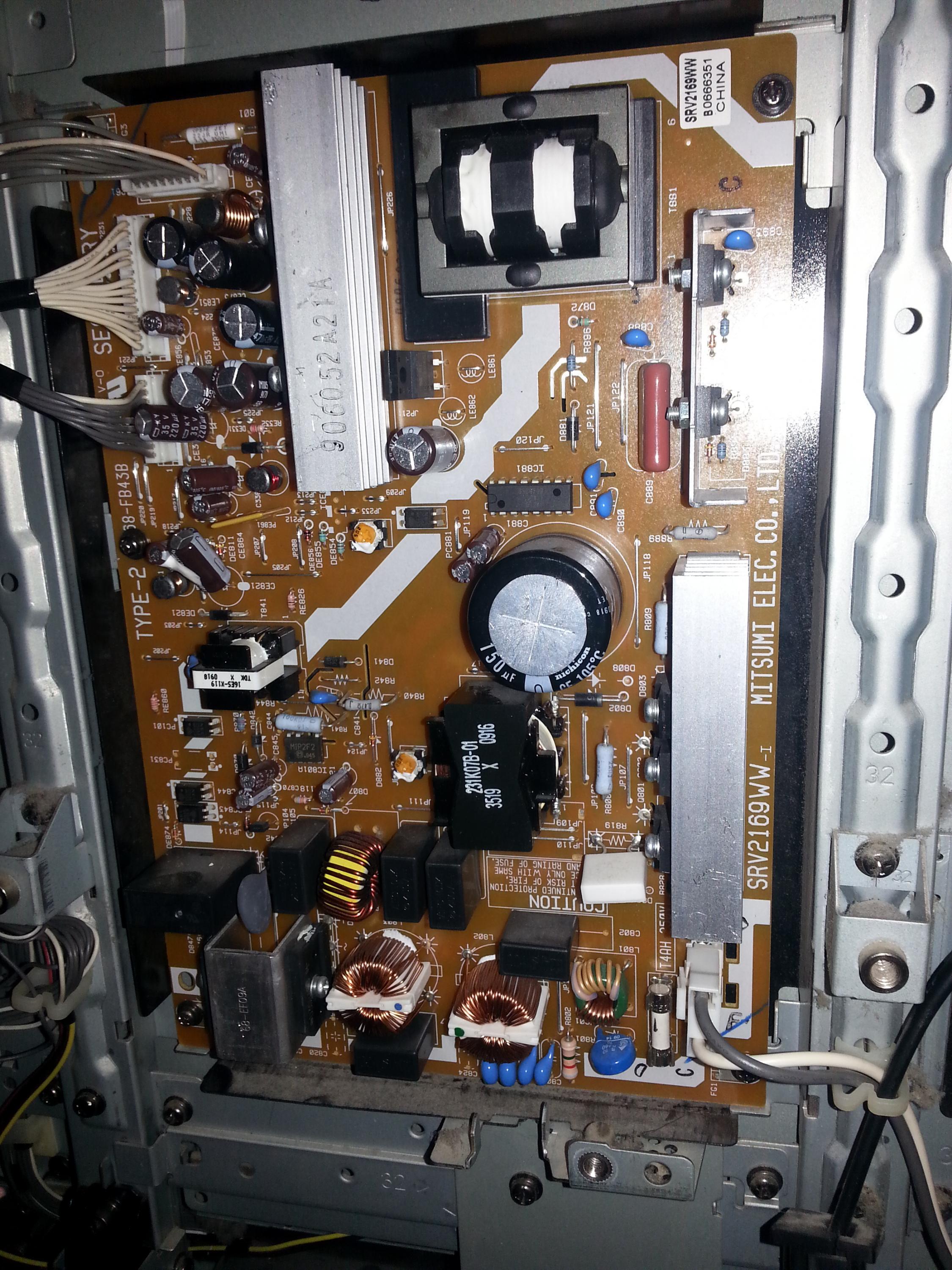 First problem of the set was the PSU went dead after a power surge. Toshiba service center says that new PSU will cost too much and the owner bring it to me(we have a common friend). I order from Ebay(trustworthy seller) a exactly the same replacement PSU board(SRV2169WW-I) and now tv is powering on as it should be. BUT..