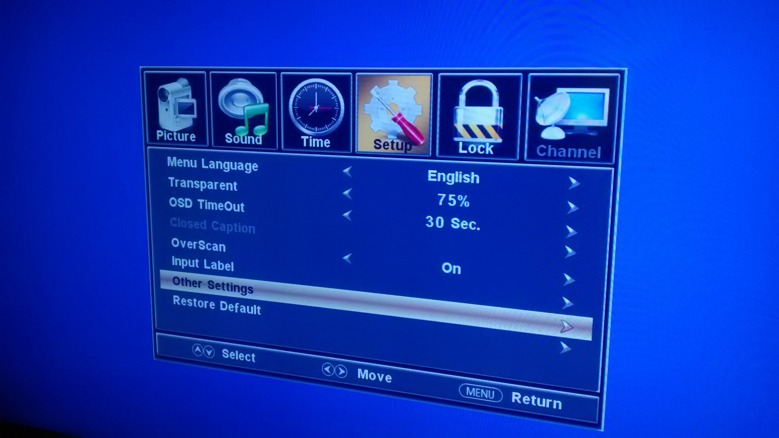 I've seen the same type of user menu on many TVs, so I'll try my luck here. (see picture)