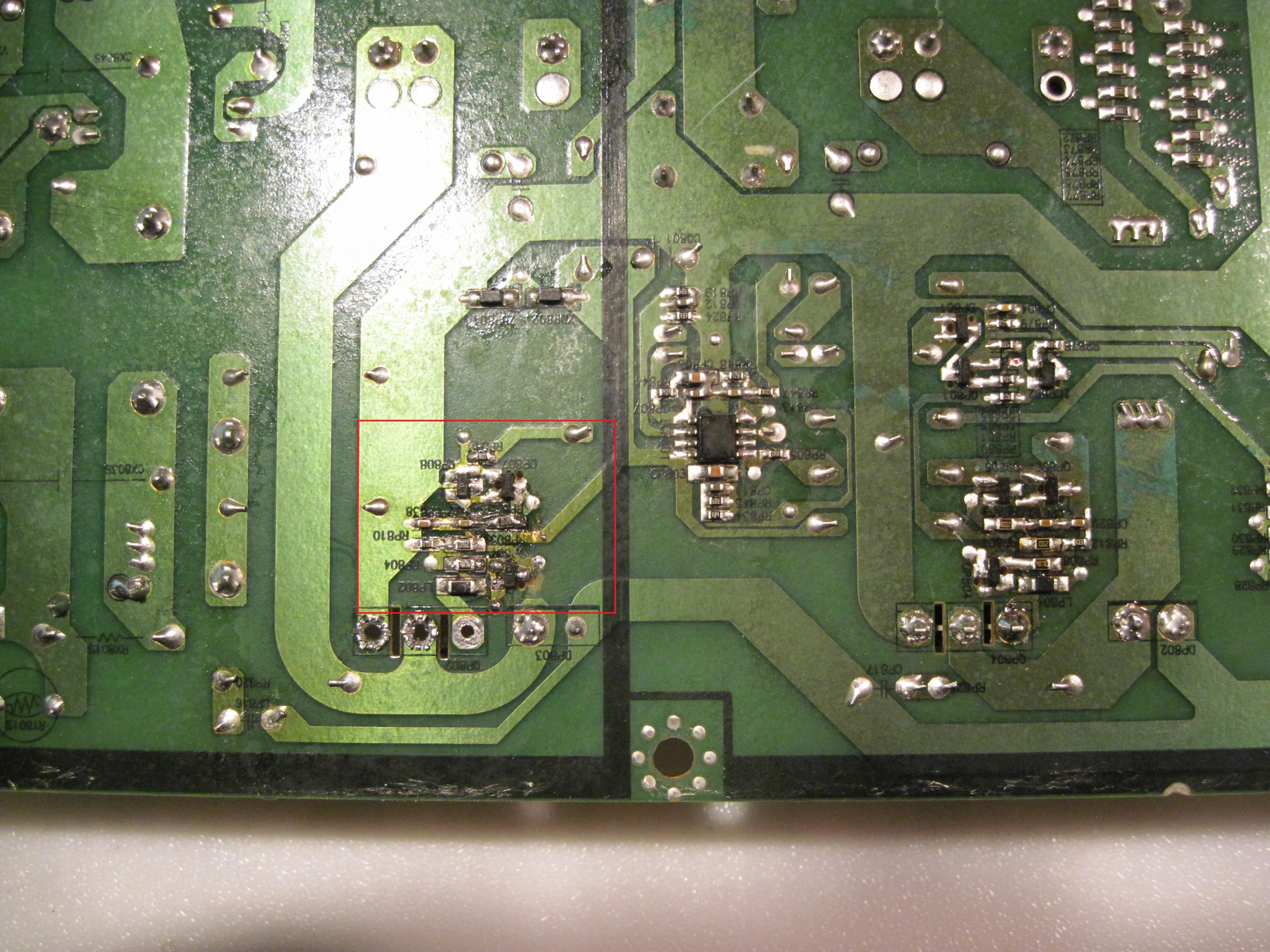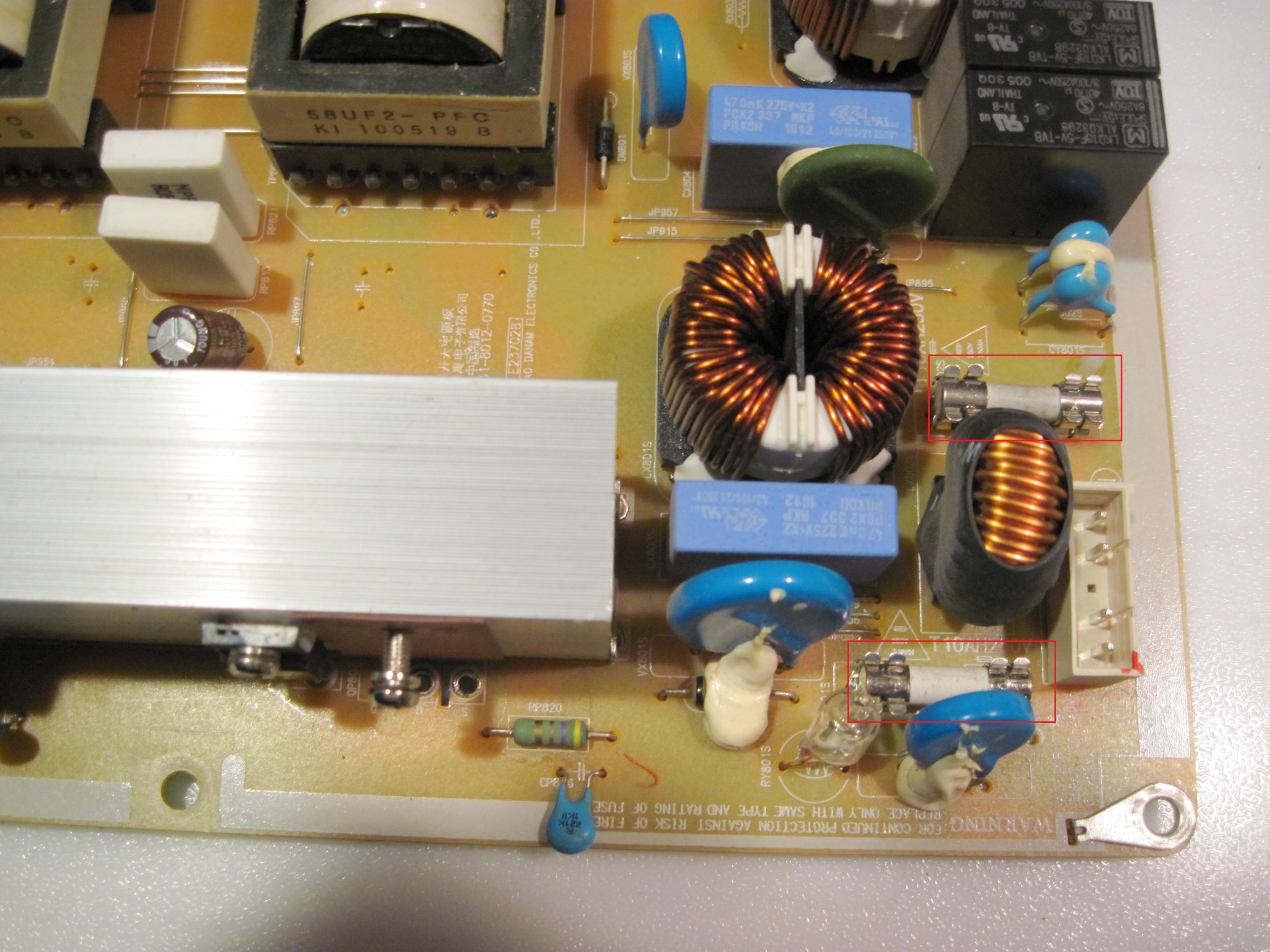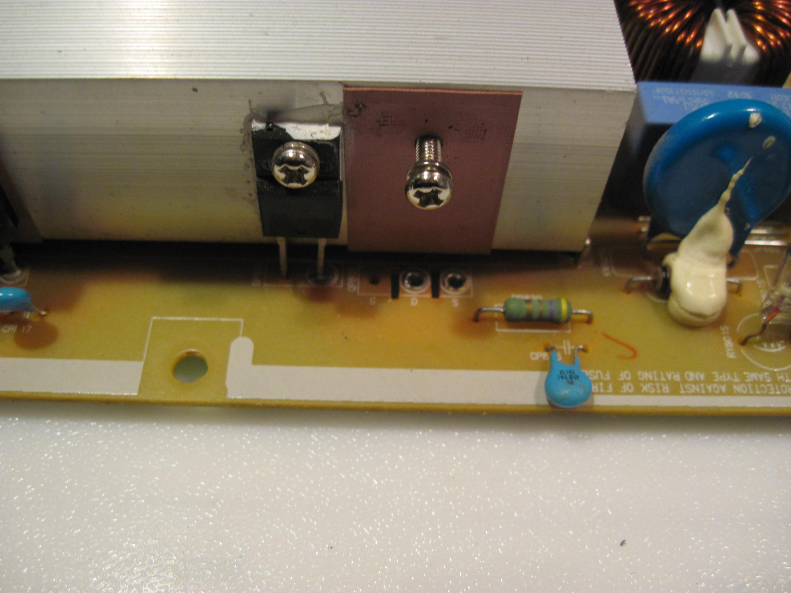Bought this one on craigslist for 20 bones. TV would not turn on when I got it. I found the QP802 MOSFET blown and both the F801S, and the F802s blown. The FET is a 20N60C3 I replaced it and both fuses, turned on the TV, ran for about 5 minutes, and blew it again.
