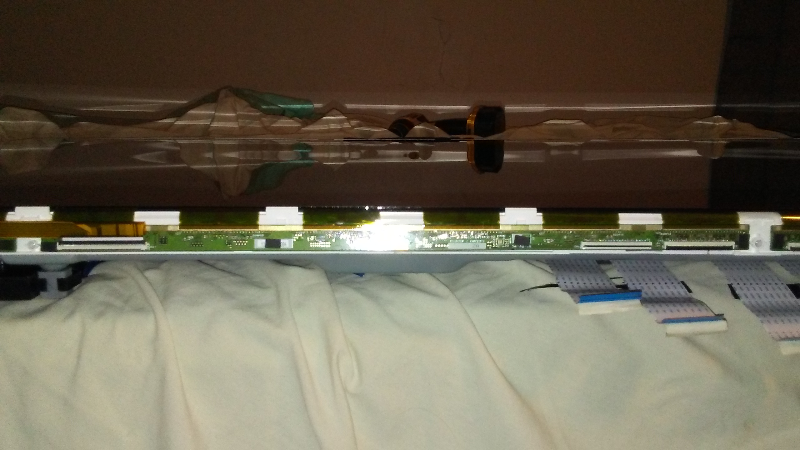 This is the TV This TV is a little different from the Samsung I have worked on. Power supply is on the Left side, Main Bd is on the right side, T-CON , not in the picture is on the bottom. I am assuming that the boards in the middle are the LED... -