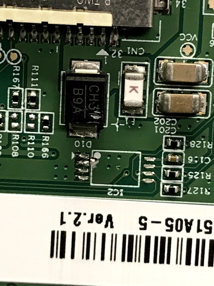 I visually inspected the boards and saw two parts are knocked off from the built-in T-CON.