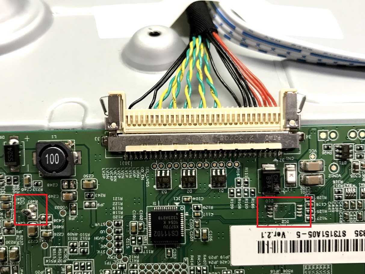I visually inspected the boards and saw two parts are knocked off from the built-in T-CON.