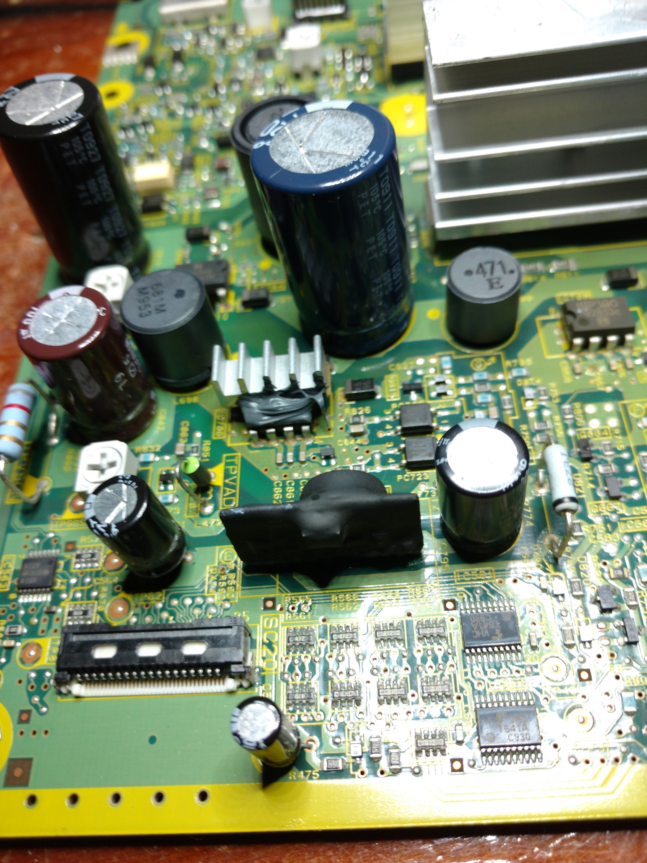 I'm trying to fix a panasonic plasma,P50S10B model,its SU was shorted,and caused SC board to fail,IC791,the orange one in the picture(i had a lot of trouble to desolder it with a 40W soldering iron that's why it looks like that) was shorted,couldn't buy it separatedly,I mistakenly bought a board for P42S10B,the 42 inch model,i have that TV also,tested the board and it works,then i inspected each board side to side.