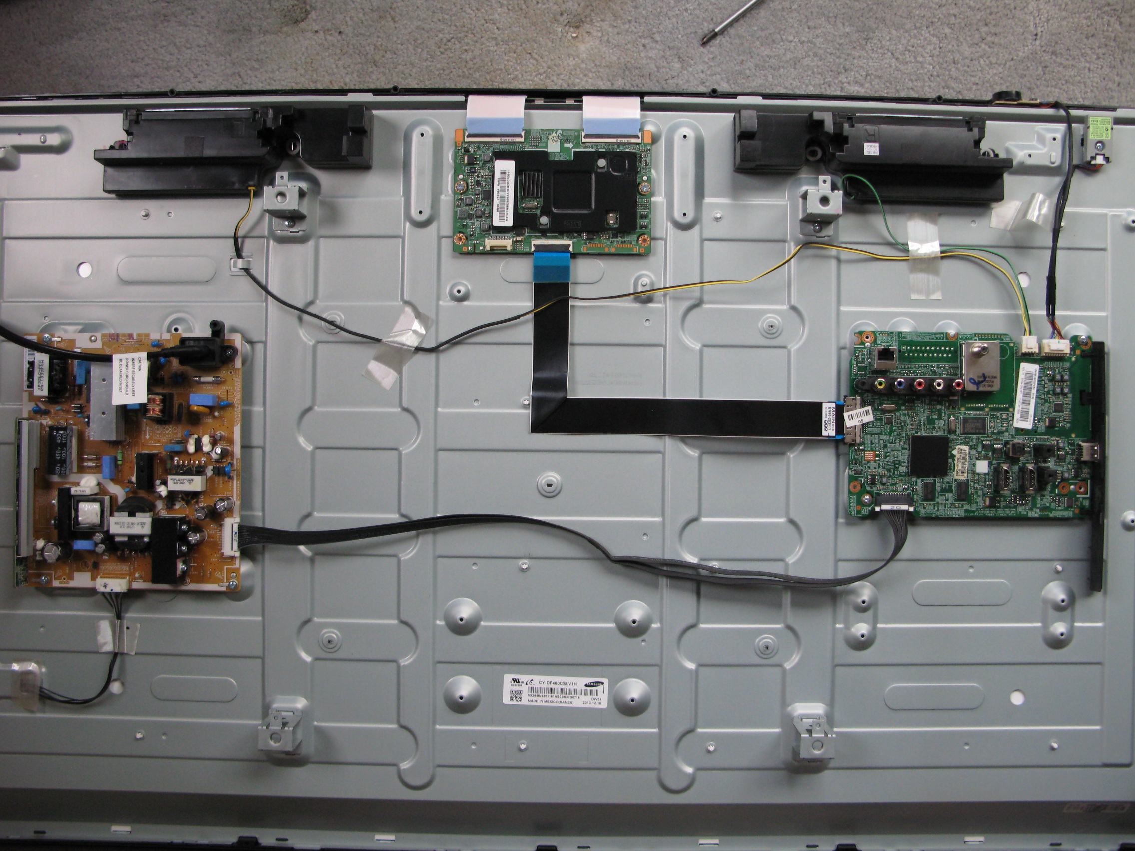 My neighbor asked me to look at this problem. I thought it might be a BGA problem, but I get no change when pressing on the circuits with that attachment on the main board, and on the T-Con.