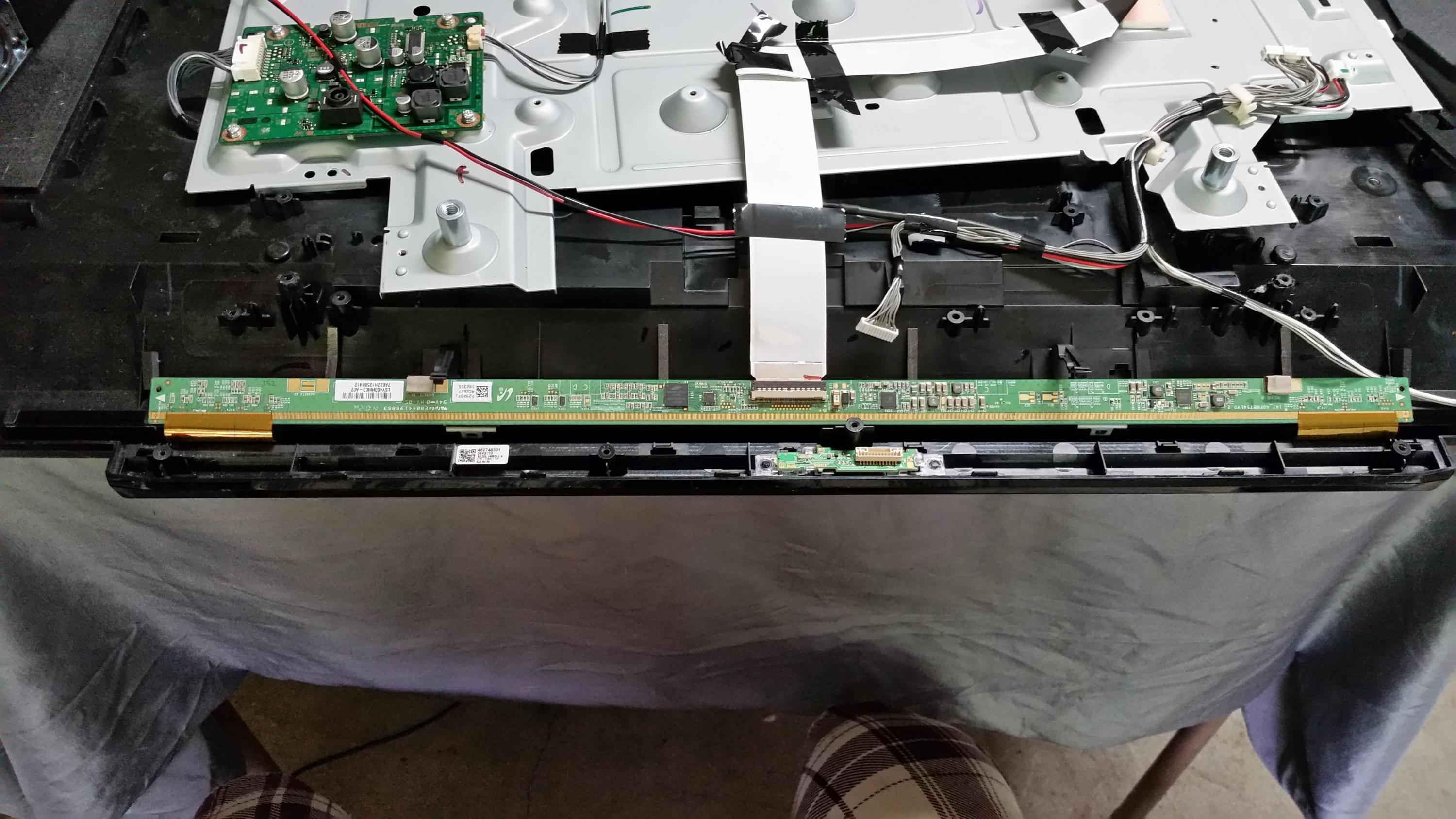 That long board attached to the LCD panel is the integrated T-CON/tab bonding board, it is not typical separated T-CON in most TV, it is money saving panel with non-replaceable T-CON.Leave a comment: