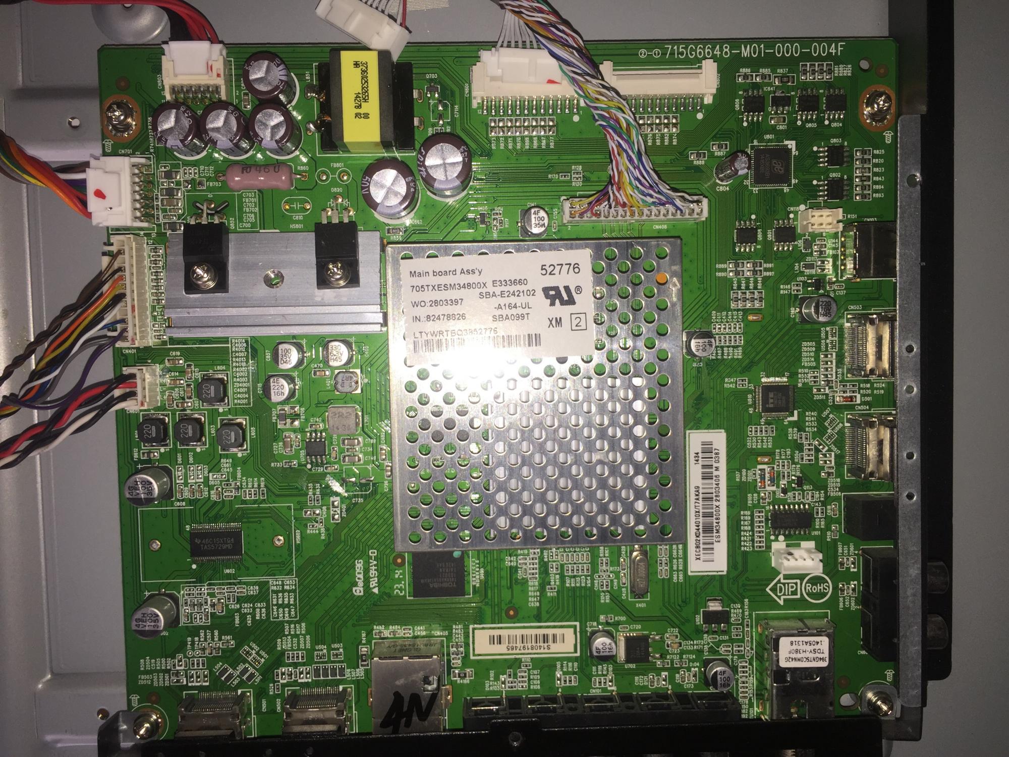 If I unplug the TV for 10 or 20 minutes. Then try to power it on, the big V will appear for a very short amount of time on the screen, then the screen will go black. There is no blacklight, and when I try the flash light test, there does not appear to be any image on the screen.
