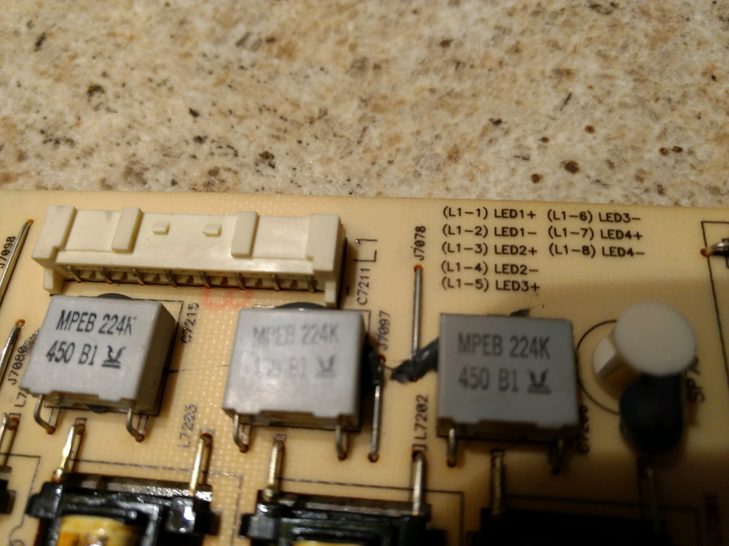 So for my set I'm wondering which IC and cap do I need to be looking for on my main board so I can short that nearby cap and try to ice the problem down? Secondly, where can I buy new LED's for this?