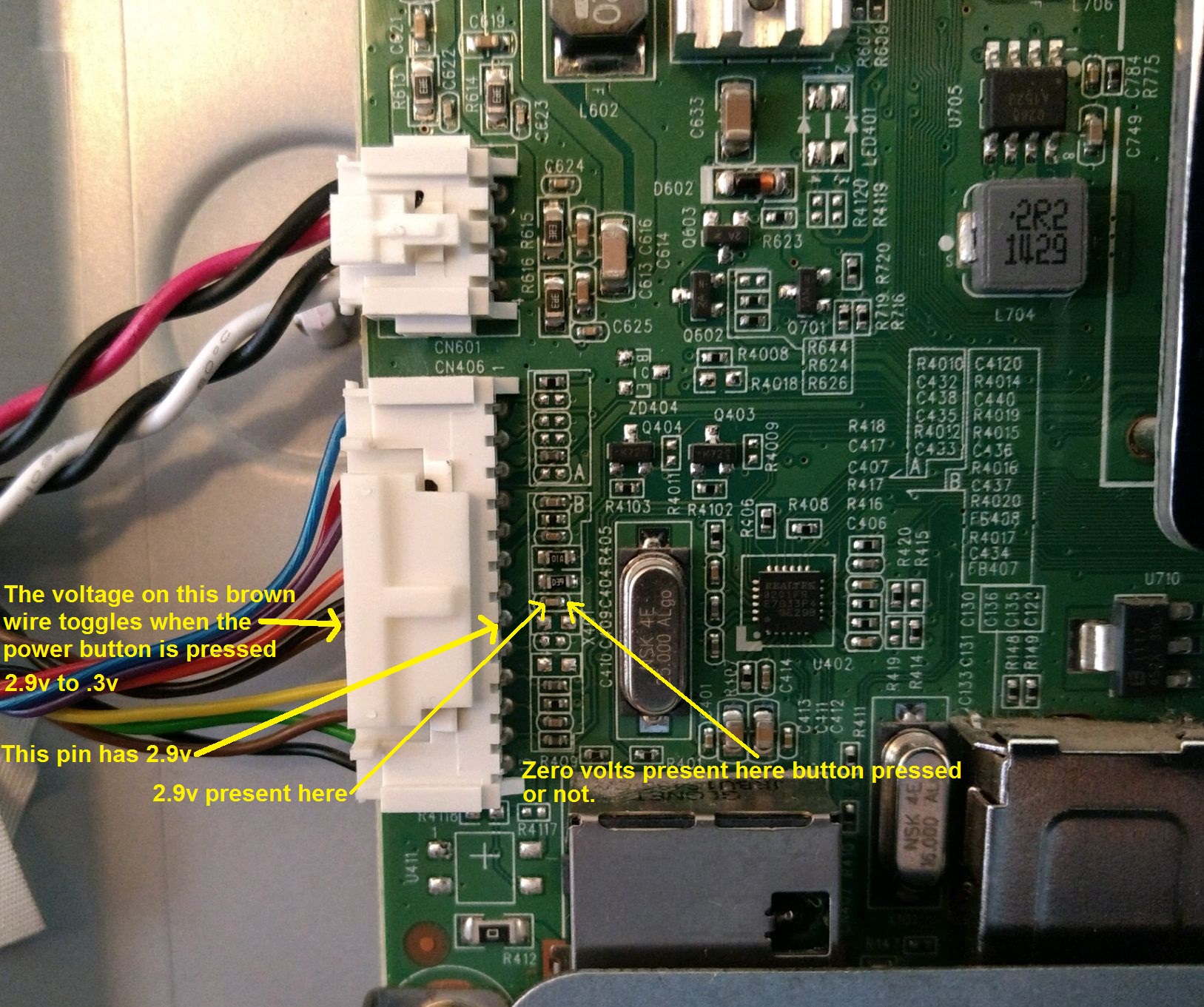 Hello all, I just got a Vizio P502ui-B1E. When I toggle the power on switch and monitor its connector at the main board I get a voltage drop from 2.9 to .3 or so. When I monitor PS_on at the output on the main board and toggle the switch it remains 2.9v.