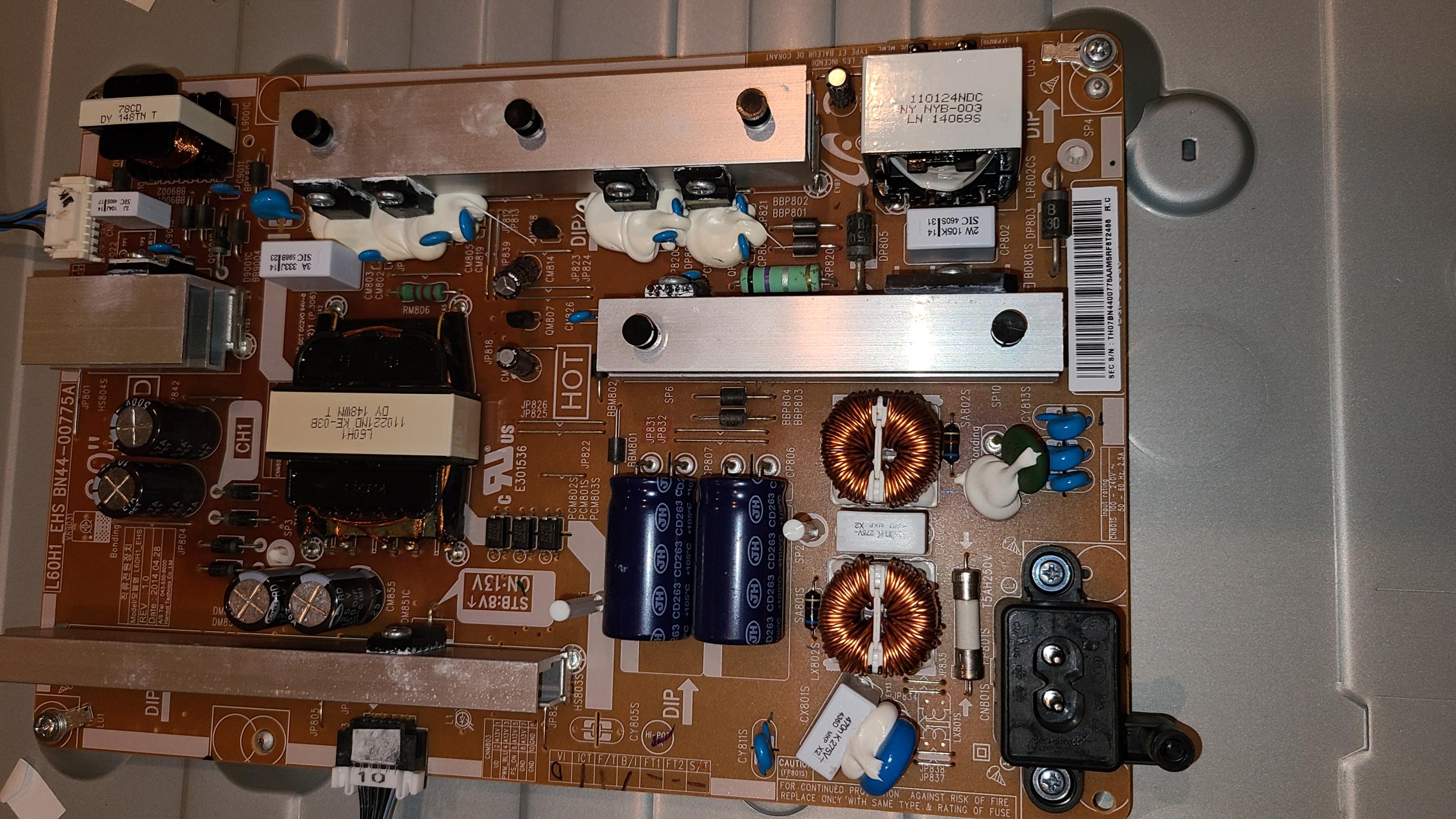 Show us good clear straight shot pictures of the whole top and bottom side of YOUR power supply board, and also the whole back side of the TV showing all the boards.
