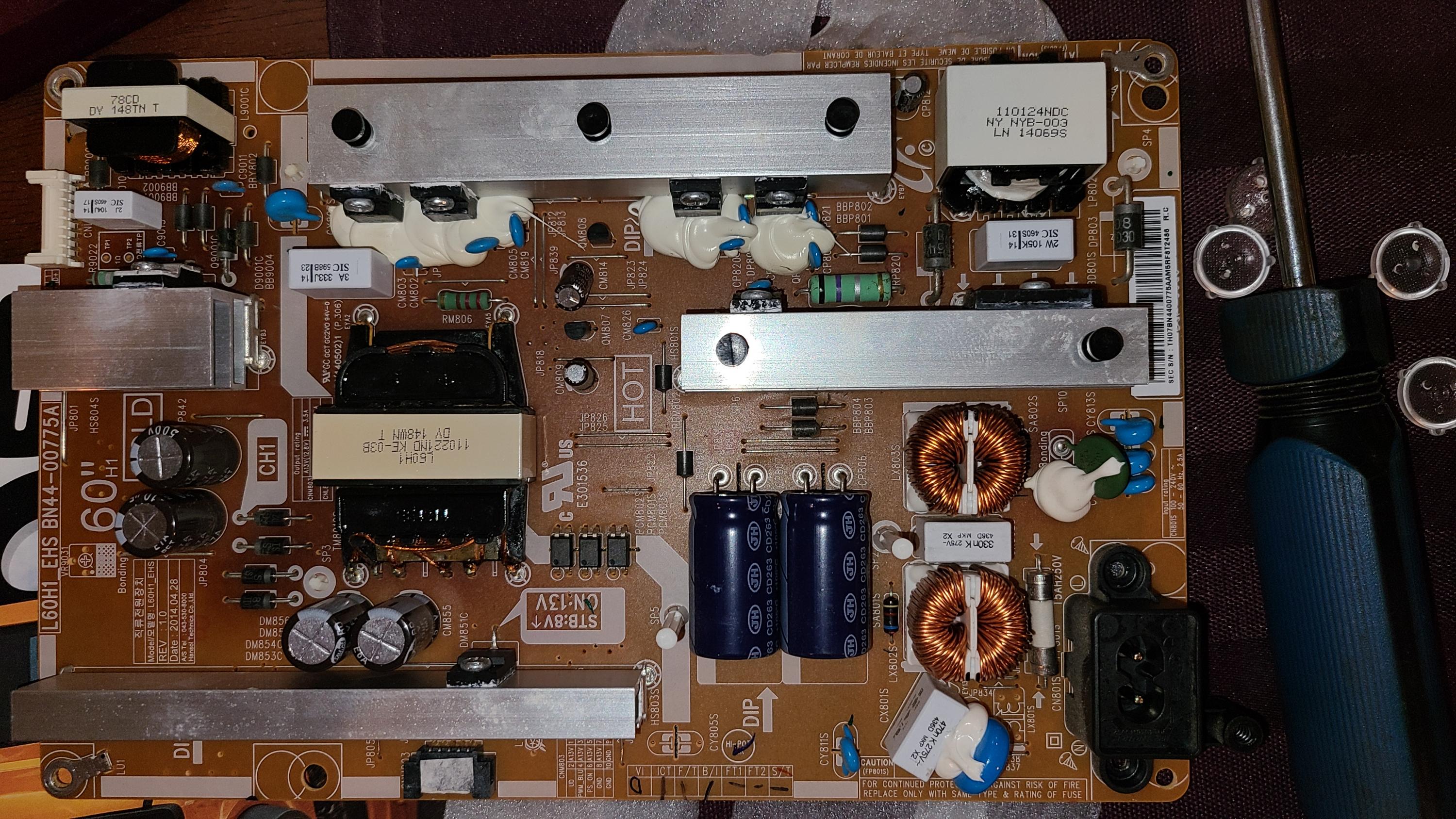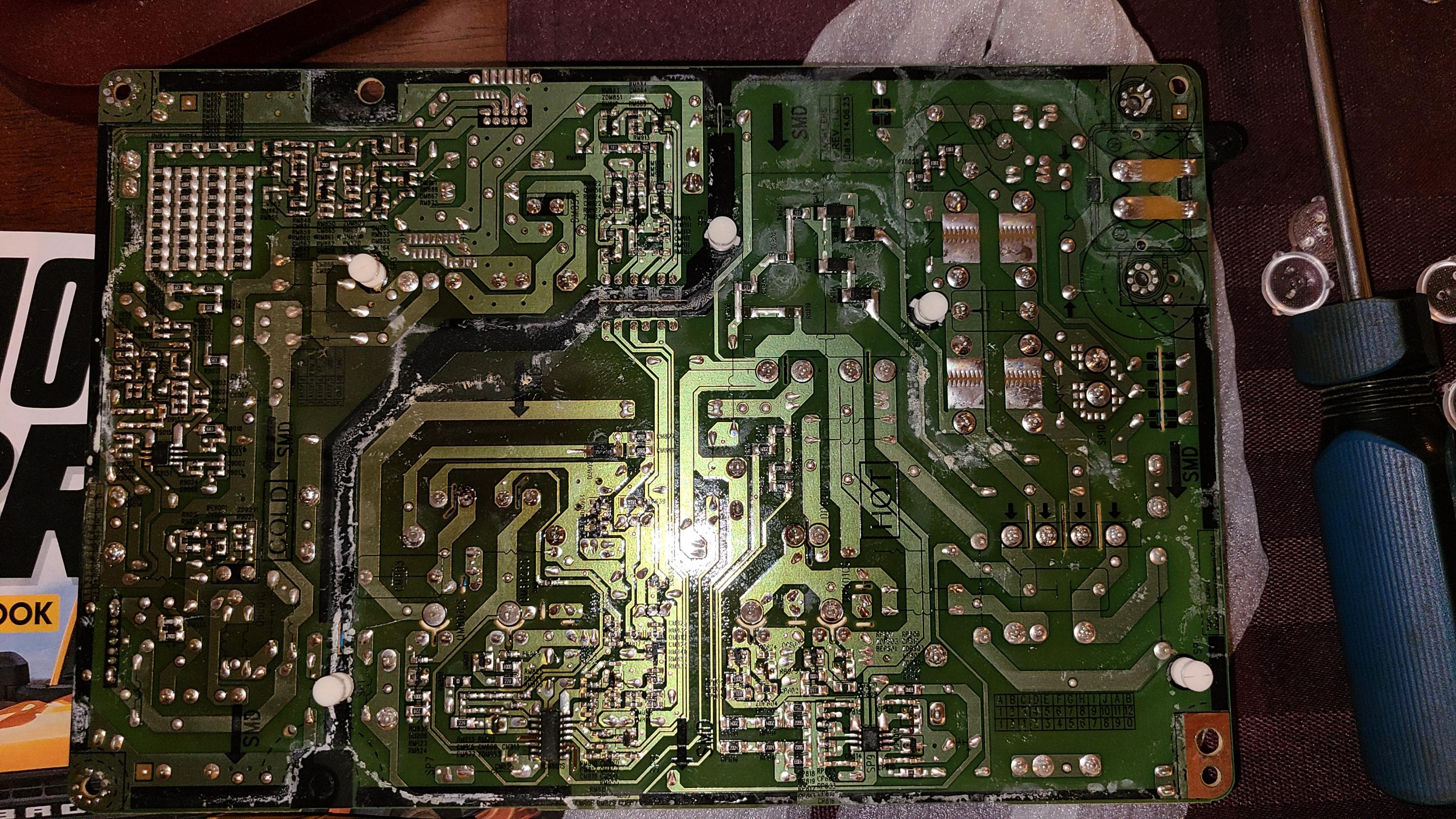 Show us good clear straight shot pictures of the whole top and bottom side of YOUR power supply board, and also the whole back side of the TV showing all the boards.