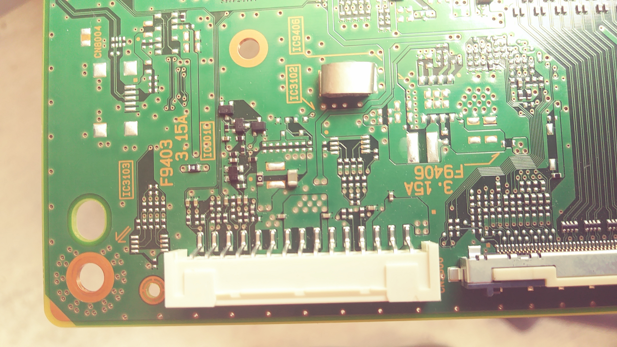 Also note there are a lot of small fuses on the main board, IE: F9403, F9406, F9401, F9002, F9000, F7700, F9009, F8400 etc. they may be worth checkingLast edited by R_J; 05-08-2018, 08:08 PM.Comment