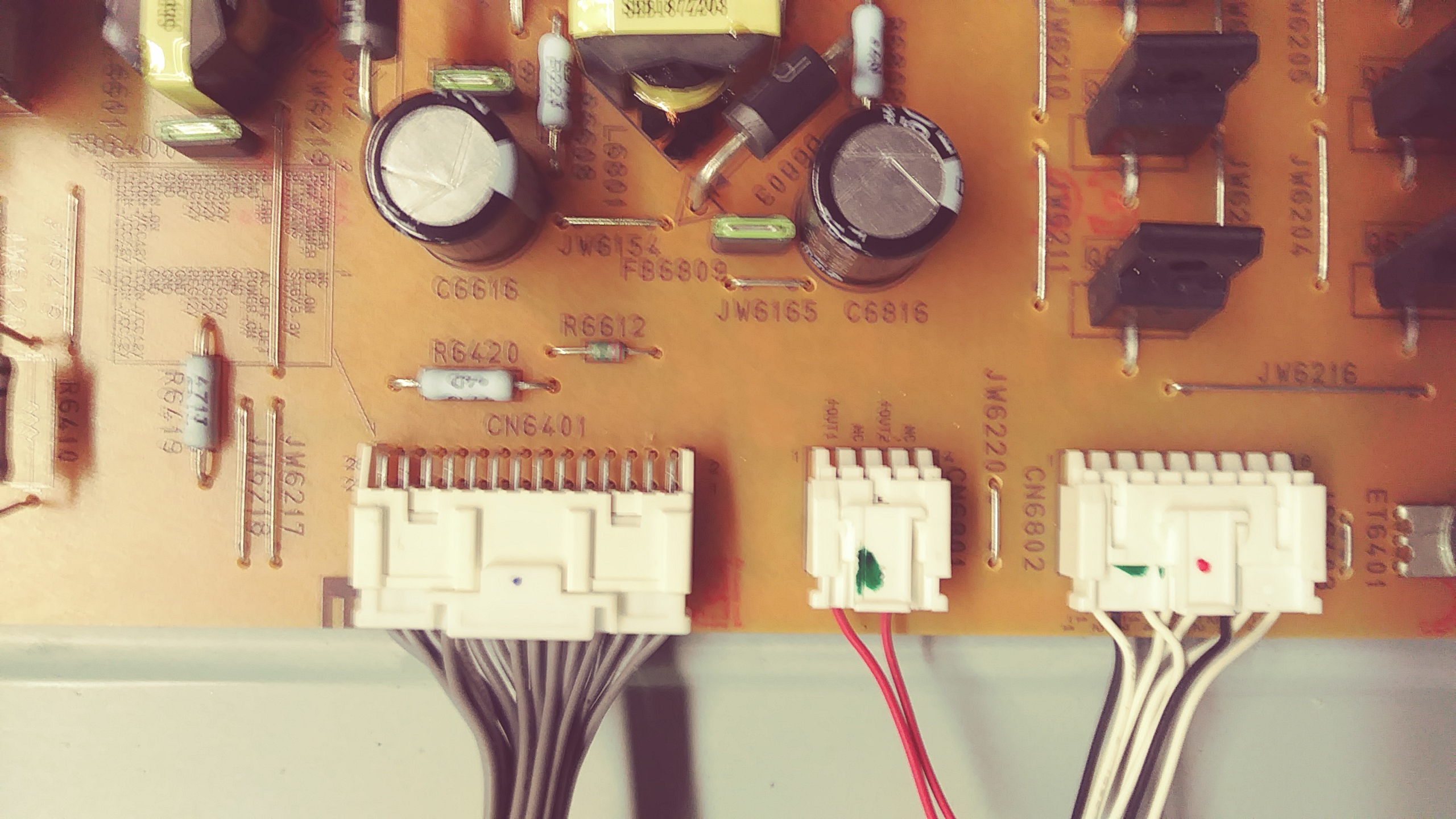 Picture is not clear, I cannot read the pin out of that large white connector, I also cannt read the power supply board P/N as printed on the white sticker.