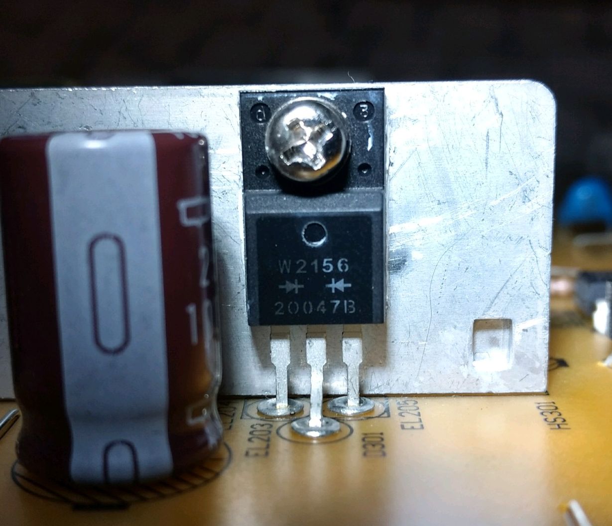 - 1x bridge rectifier GBU601. there's actually two of these on the board, one is obviously burnt and the other does not seem to have any anomalies like shorts. However I figure may as well replace both.