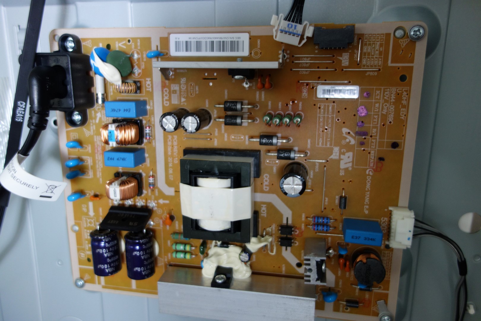 Reseated all LED strip connectors, unplugged cable from main board to power supply (BN44-00769C).