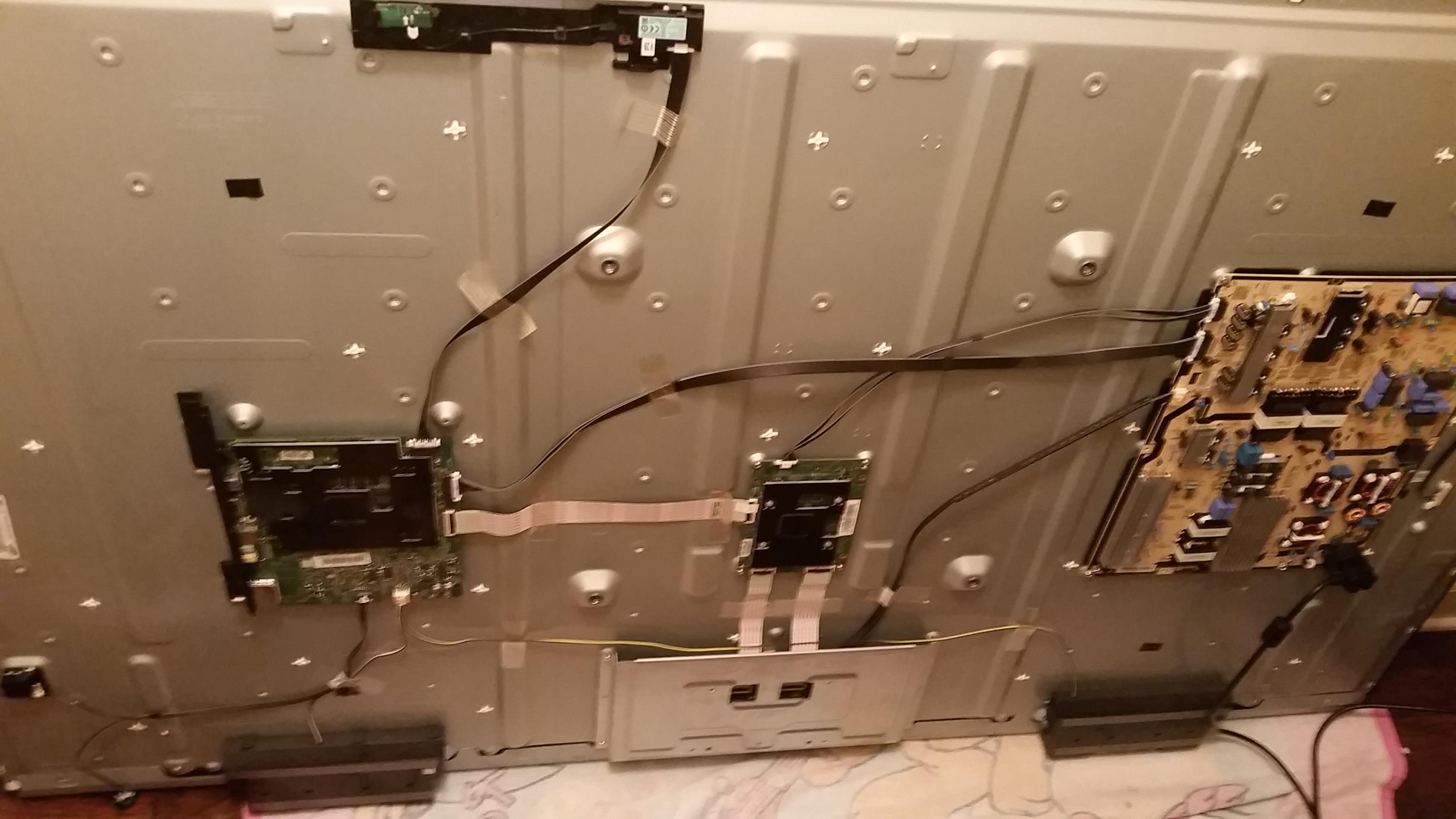 I got this TV from a friend of mine. He originally bought it from BestBuy, who installed it. Once, when I was working on it, we proceeded to do a firmware update. It hung during that firmware update and never recovered. Samsung support sent out techs multiple times and finally ended up replacing the mainboard on it. After that it worked just fine for the past 2 years I believe. He recently had a professional moving company move all of his belongings. The TV worked fine before they moved it. And after the move is when the problems started and he didn't want it anymore, so I picked it up from him. When I first saw it at his house, it had more screen artifacts in it, I'll just call them "ghosting" colored lines move across the screen while you were on the TV menu.