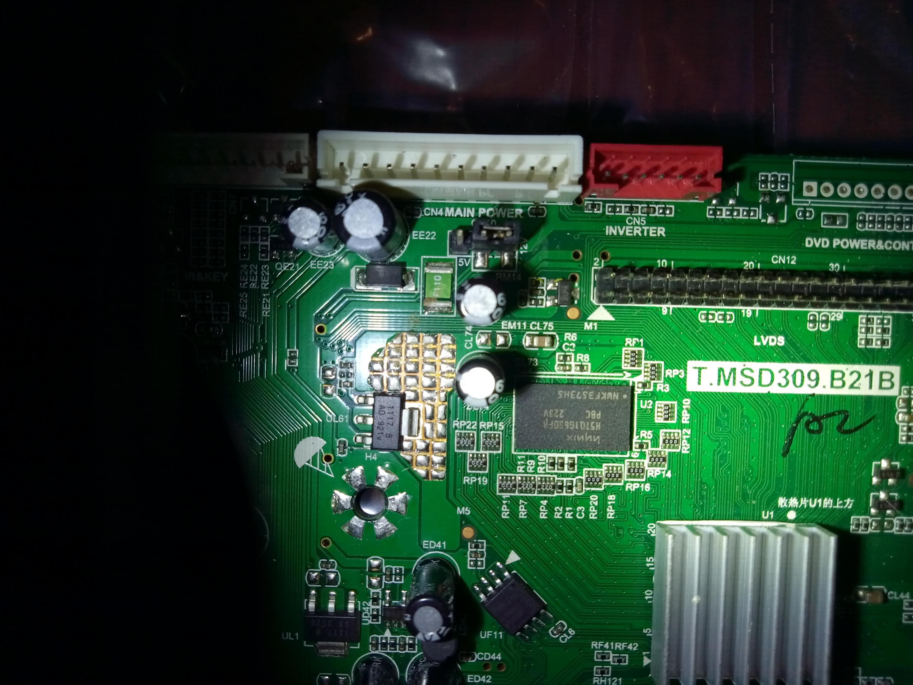 The main board is T.MSD309.B21B, display is LC320WXN SC B1, flash ic is h5tq1g63dfr