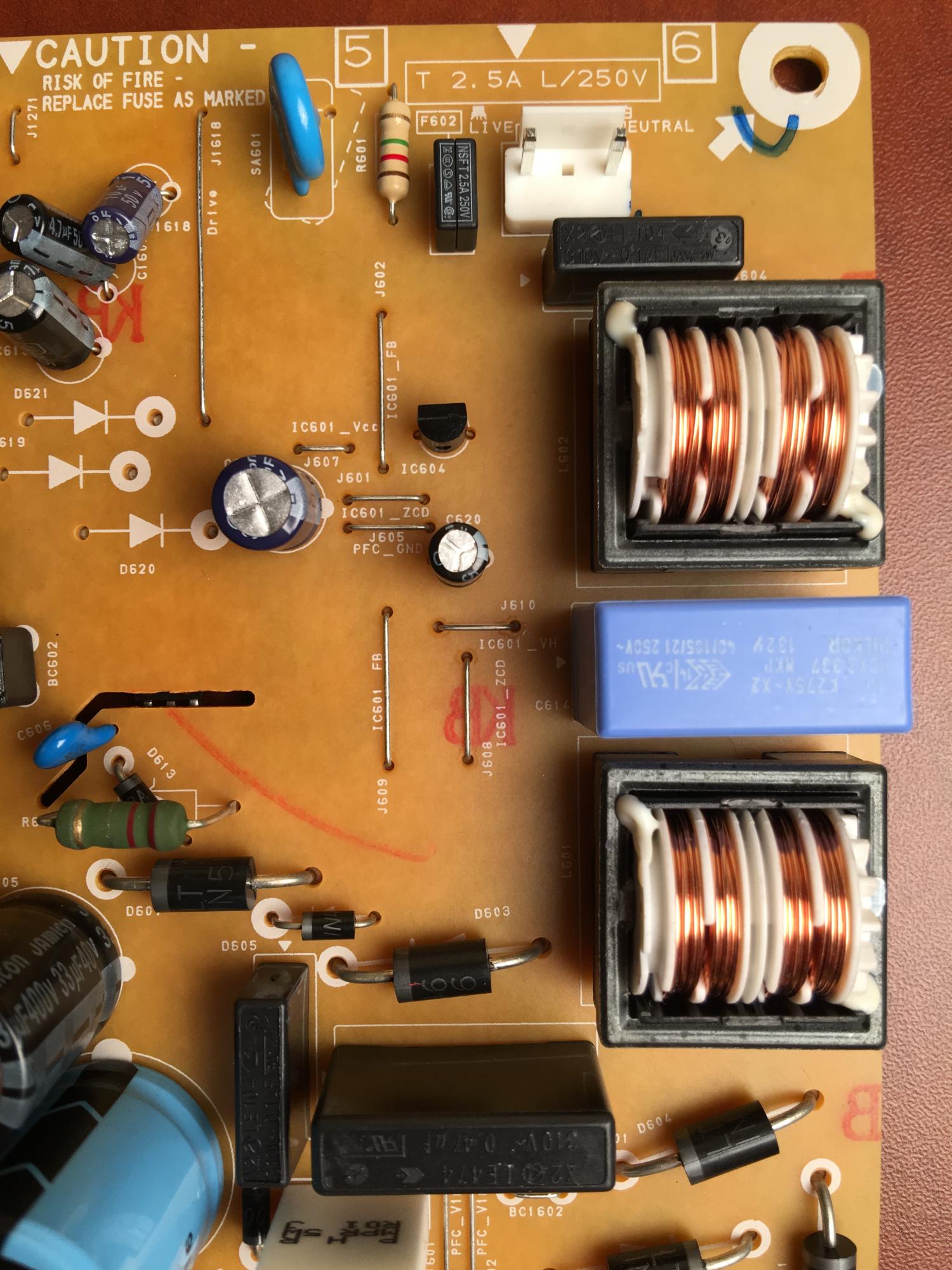 I am not sure which diode is emitting the beeping sound (I assume the beep happens when a diode gets stuck open or there is a short). I also can not find any schematic or service manual for this model tv. I do have a DMM and would be happy to post any test results that you guys think would be helpful to help me diagnose this issue.