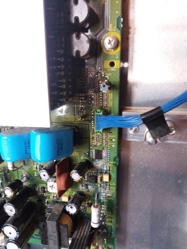 Then I checked the X-sus board. The large 2-wire (HV I guess) plug would make no difference if I unplugged it. If I unplugged the other smaller ("TPVDA") plug, it would not click at all and would stay in green led but then I realized the hardware switch from the fron panel go "across" this board, so the power on pin would get interrupted after removeing this plug.