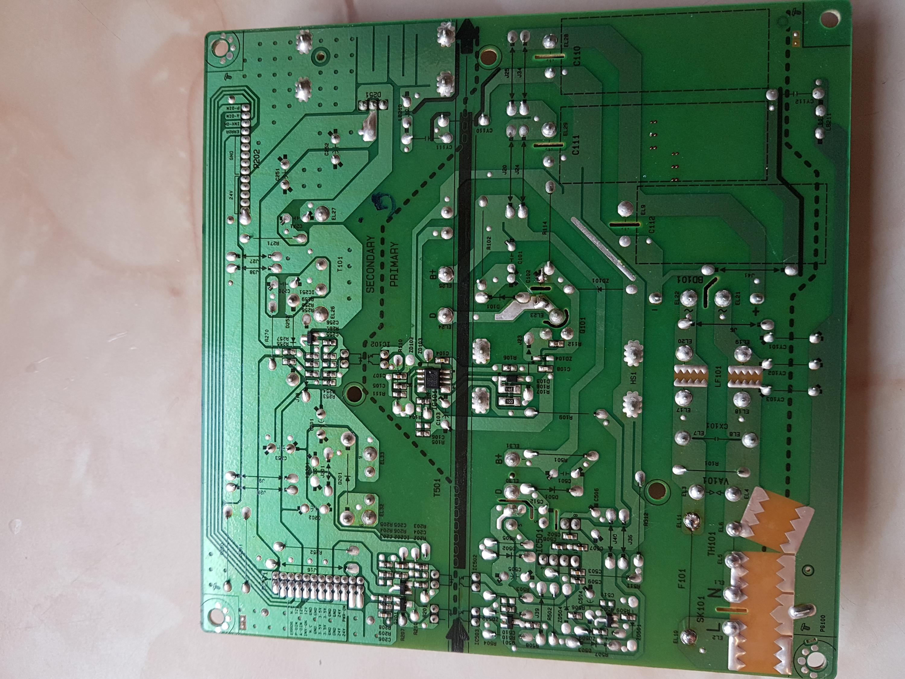 Hi sorry! please see attached photos! blue capacitor replaced is C102 ( you can see burn mark) and F101 (FUSE) also the readings are as follows: