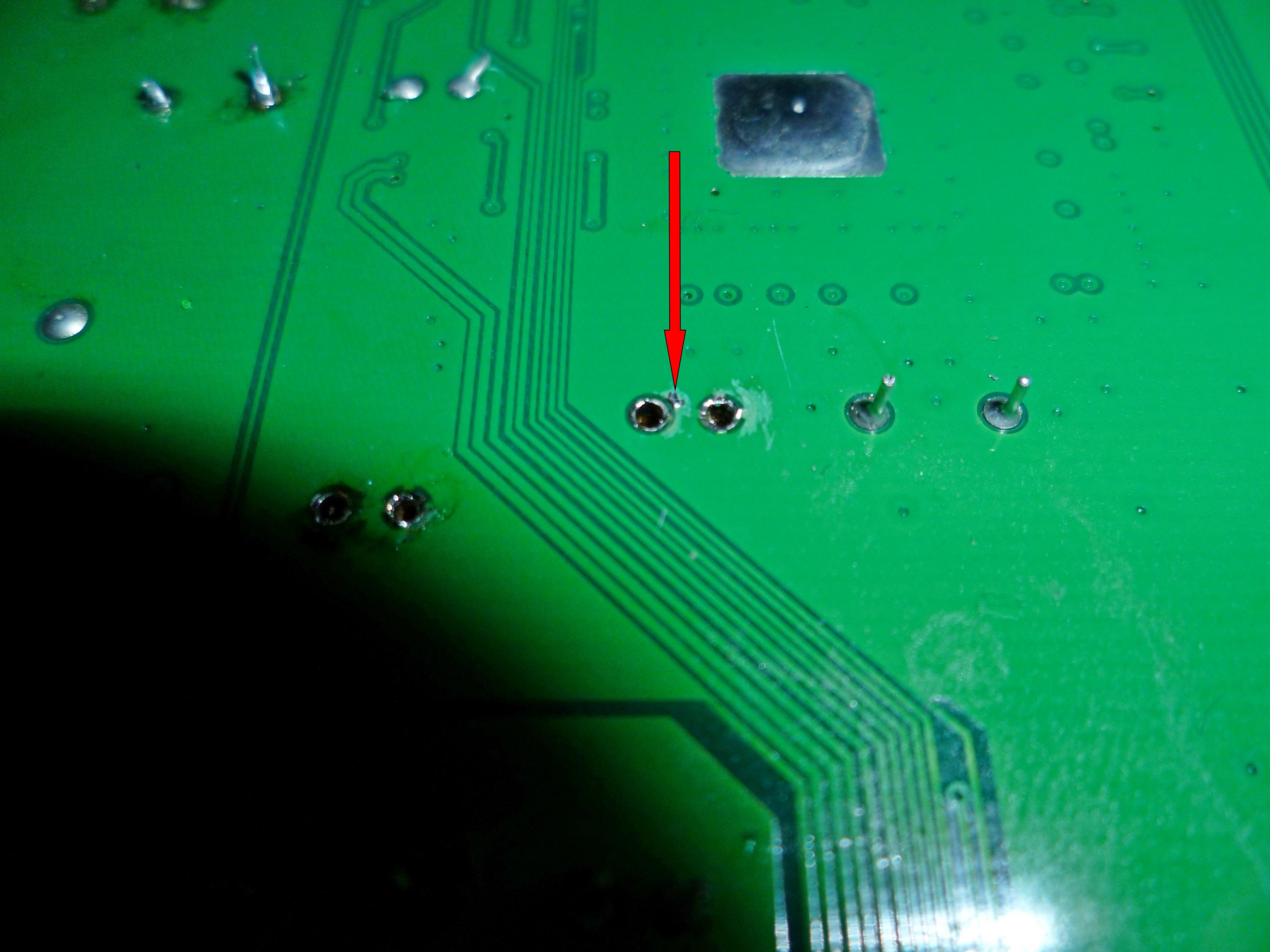 Budm: I went on to remove C218 and lo and behold, the shorts had gone! Measured C218 by itself and it was not shorted? So I inspected the underboard pad, copy attached. This is the positive pad of C218, and the arrow points to ground which is a few millimeters from the positive side of C218.