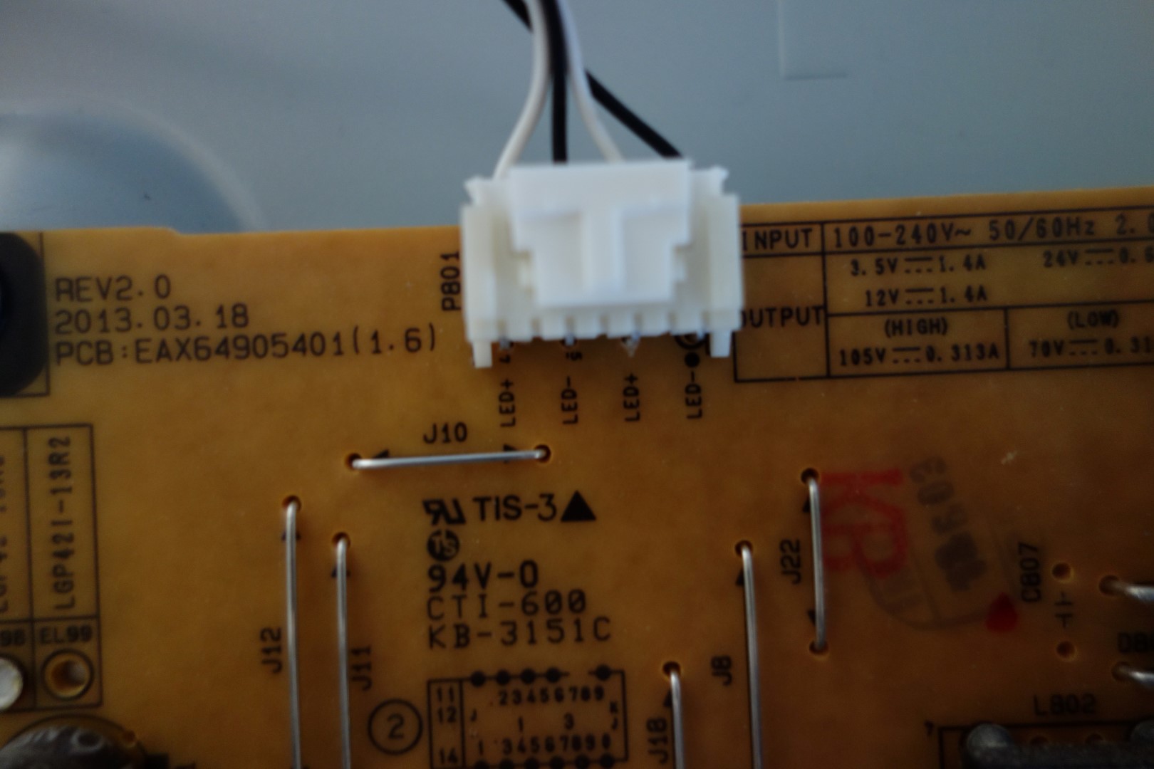 Have replaced LED backlights 3-4 times on this model. This one the backlights test good with an LED tester. Replaced the power supply board with no improvement. Have standby voltage and TV turns on (front led blinks and goes out) with no backlight and turns off (front led comes back on). Disconnecting power to main cable does not turn on the backlights.