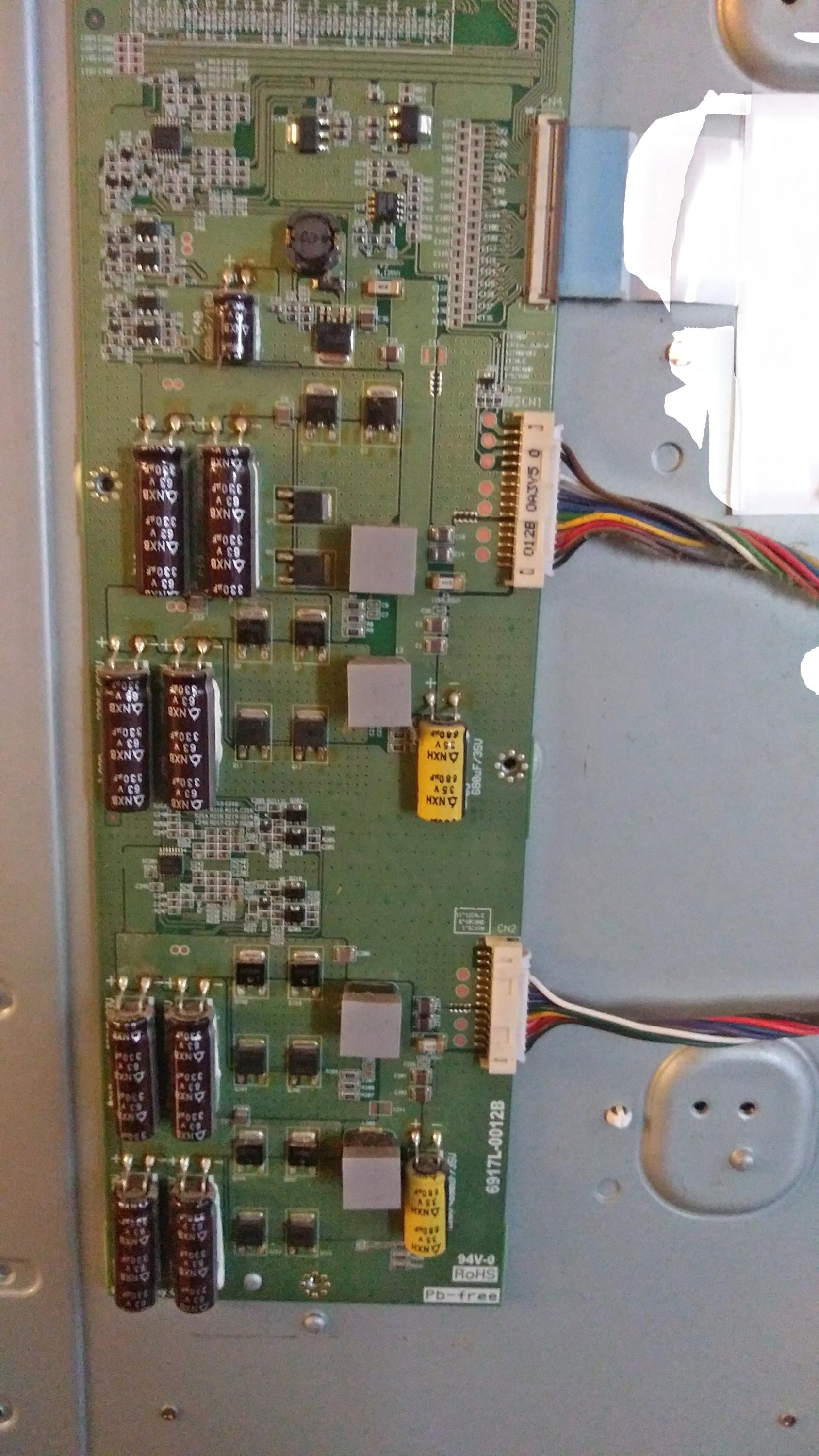 I'm having a problem with my TV turning off. It's shutting down when the LED driver board starts up. I've taken the power supply out in the hopes of finding some swollen caps, but all of them look fine.